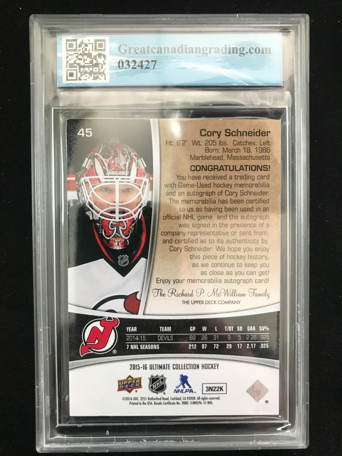 2016-17 UD CORY SCHNEIDER NO. 45 ULTIMATE AUTO 45/99 (GCG 9.5)