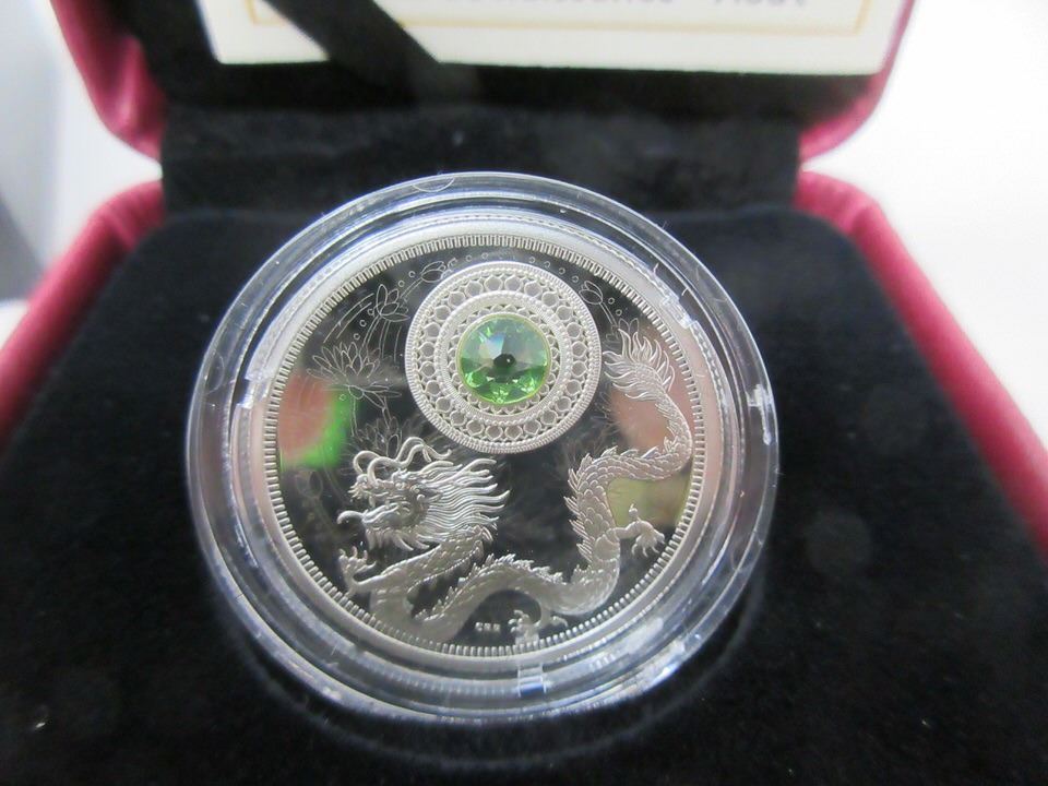 7.96 grams of .9999 Silver with Swarovski Crystal Elements. Mintage: 3,000. In display box with mint certificate. Tax exempt.