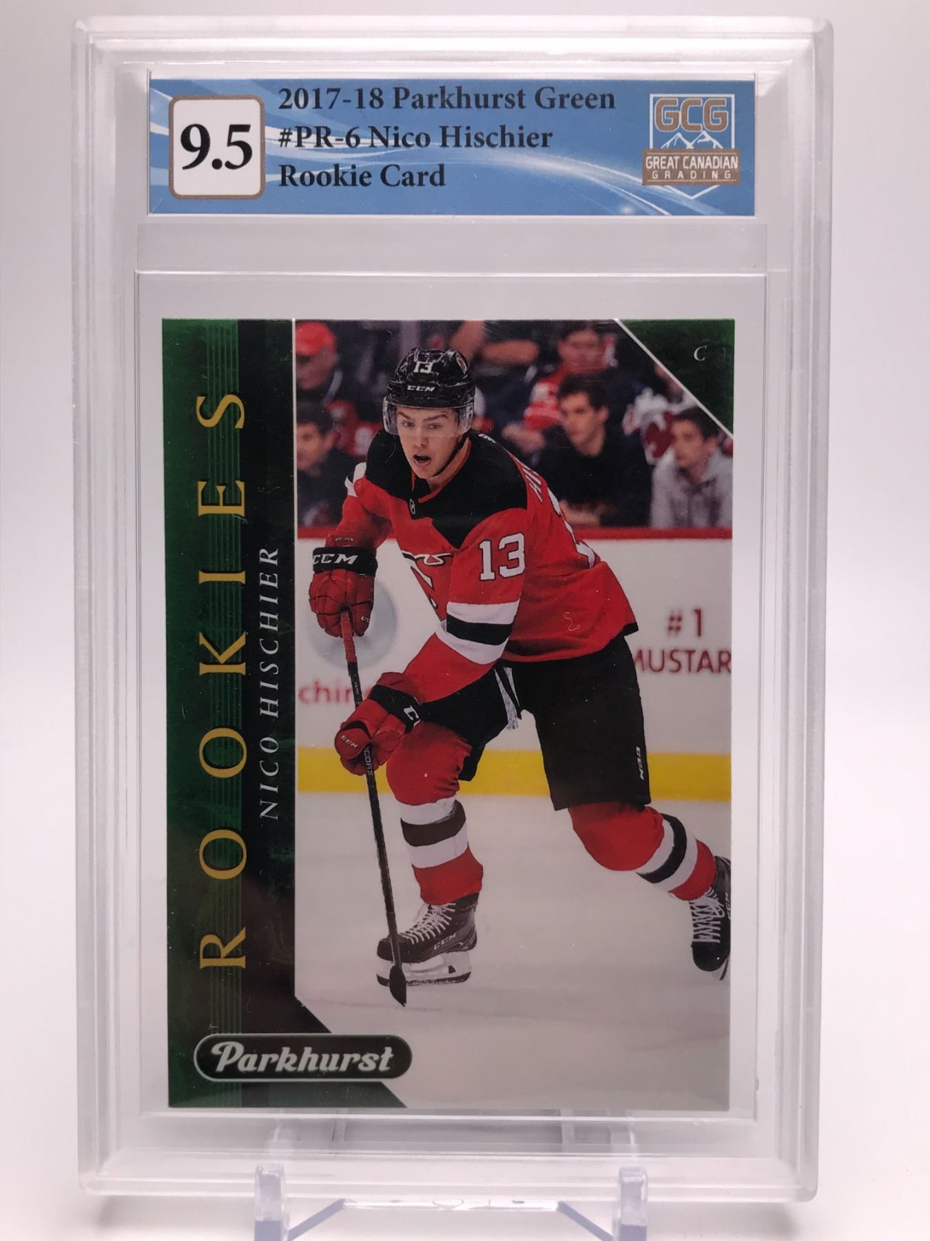 2017-18 PARKHURST GREEN NO.PR-6 NICO HISCHIER ROOKIE CARD GCG GRADED 9.5