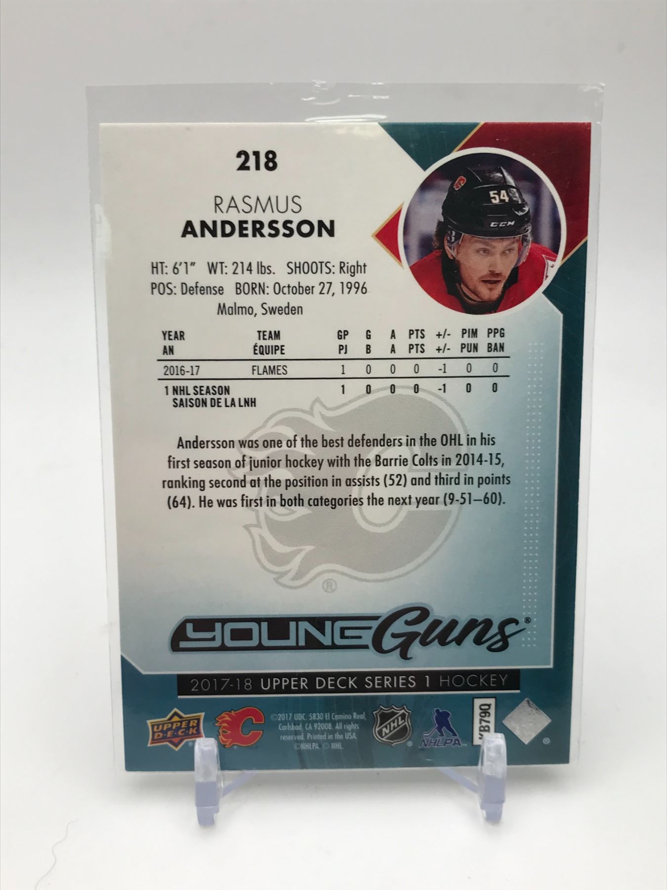 2017-18 UPPER DECK SERIES 1 NO.218 RASMUS ANDERSSON YOUNG GUNS