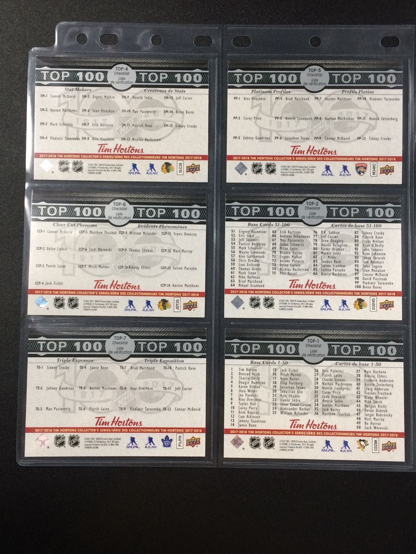 2017-18 UPPER DECK TIM HORTONS COLLECTORS SERIES TOP 100 CARD LOT