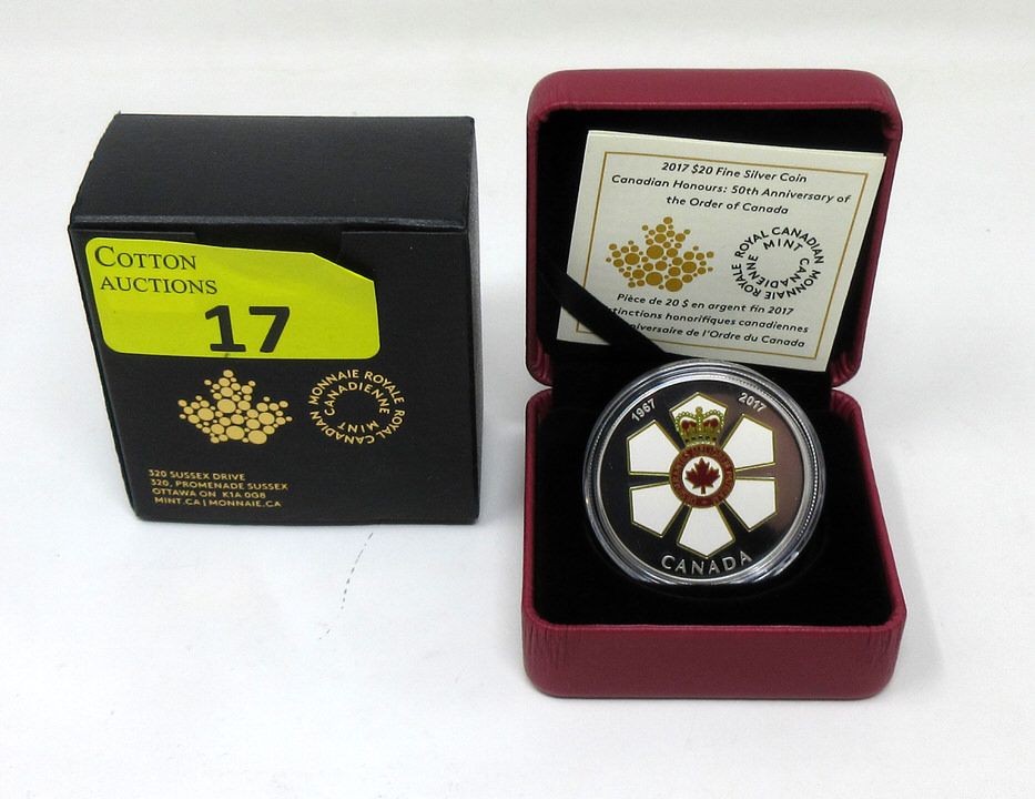 "Canadian Honours: 50th Anniversary of the Order of Canada". Colourized. Mintage 5,500. Tax exempt.