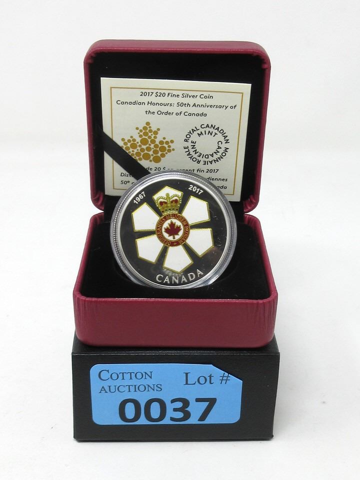 "Canadian Honours: 50th Anniversary of the Order of Canada". Colourized. In RCM box with RCM certificate. Mintage 5,500. Tax exempt