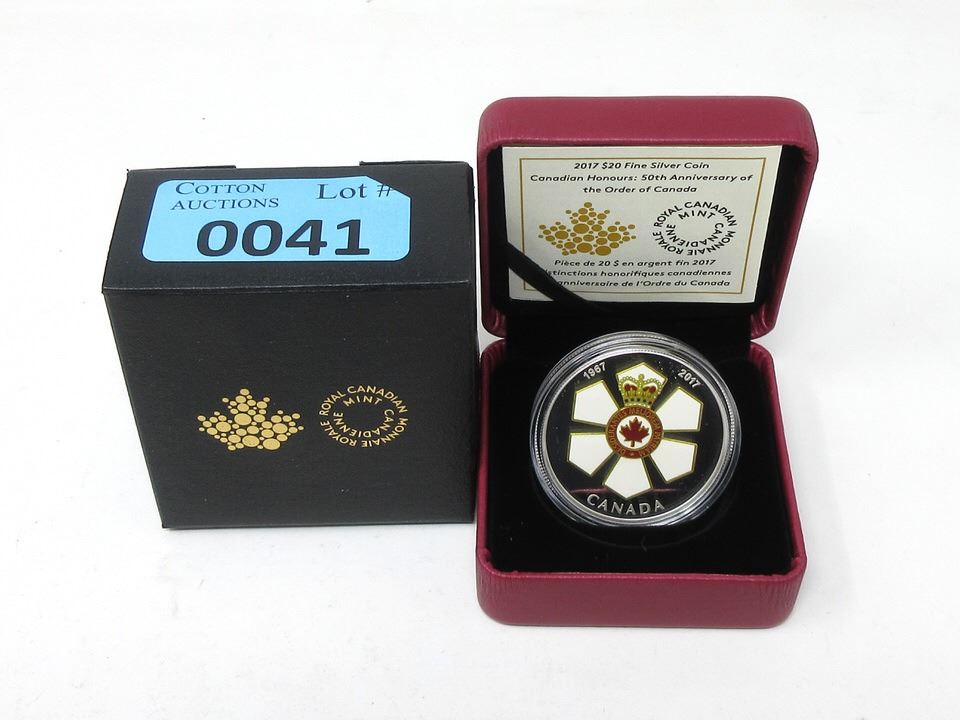 "Canadian Honours: 50th Anniversary of the Order of Canada". Colourized. In RCM box with RCM certificate. Mintage 5,500. Tax exempt
