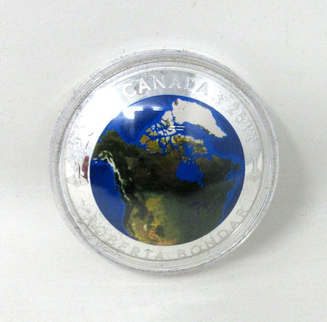 "A View of Canada from Space". 30.75 Grams. Ltd. Mintage of 8,500. In Mint case with certificate. Tax exempt.