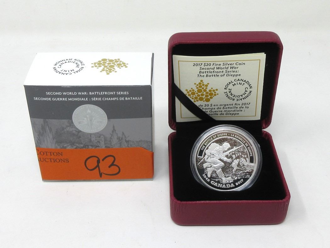 "The Battle of Dieppe". 31.39 Grams. Complete with certificate in Canadian Mint box. Only 7,500 minted. Tax exempt.