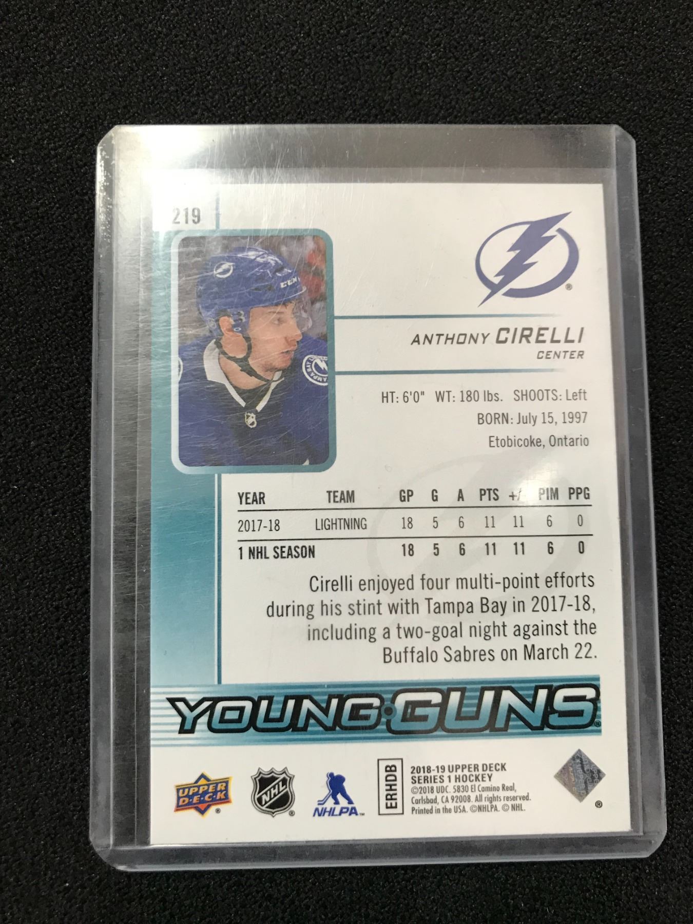 2018-19 UPPER DECK NO.219 ANTHONY CIRELLI YOUNG GUNS