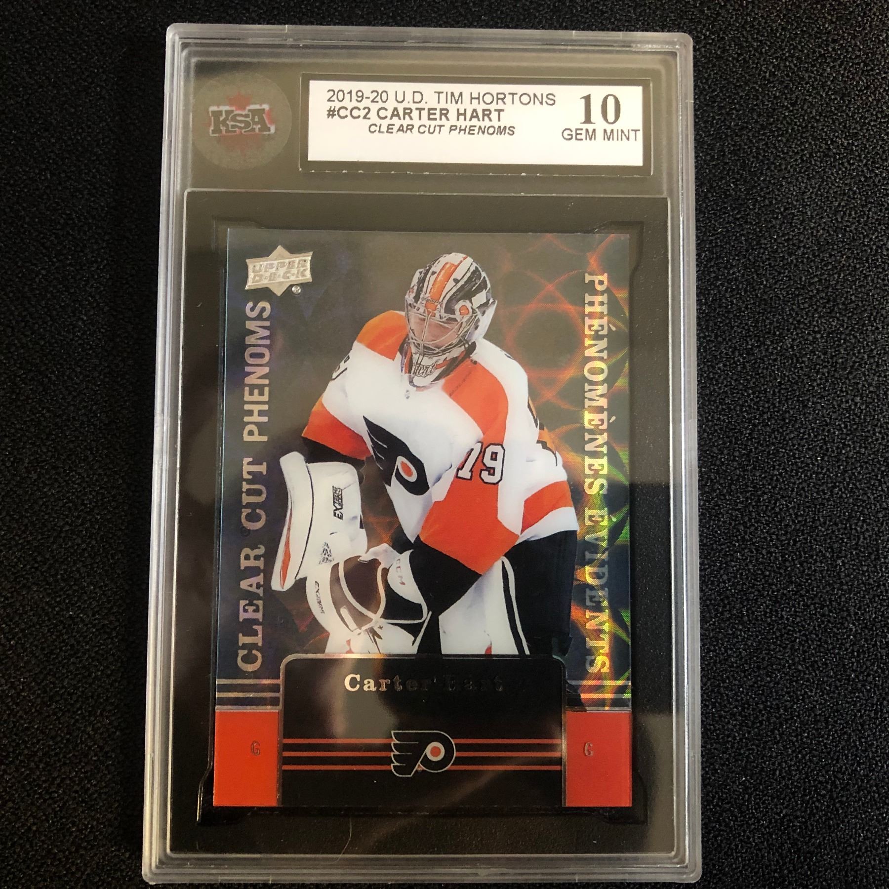 2019-20 UD TIM HORTON'S #CC2 CARTER HART CLEAR CUT PHENOMS (10 GEM MINT)