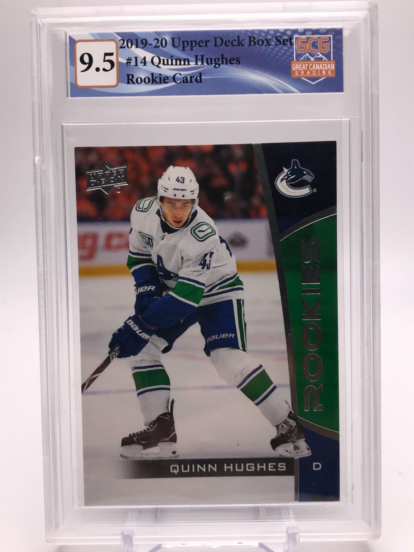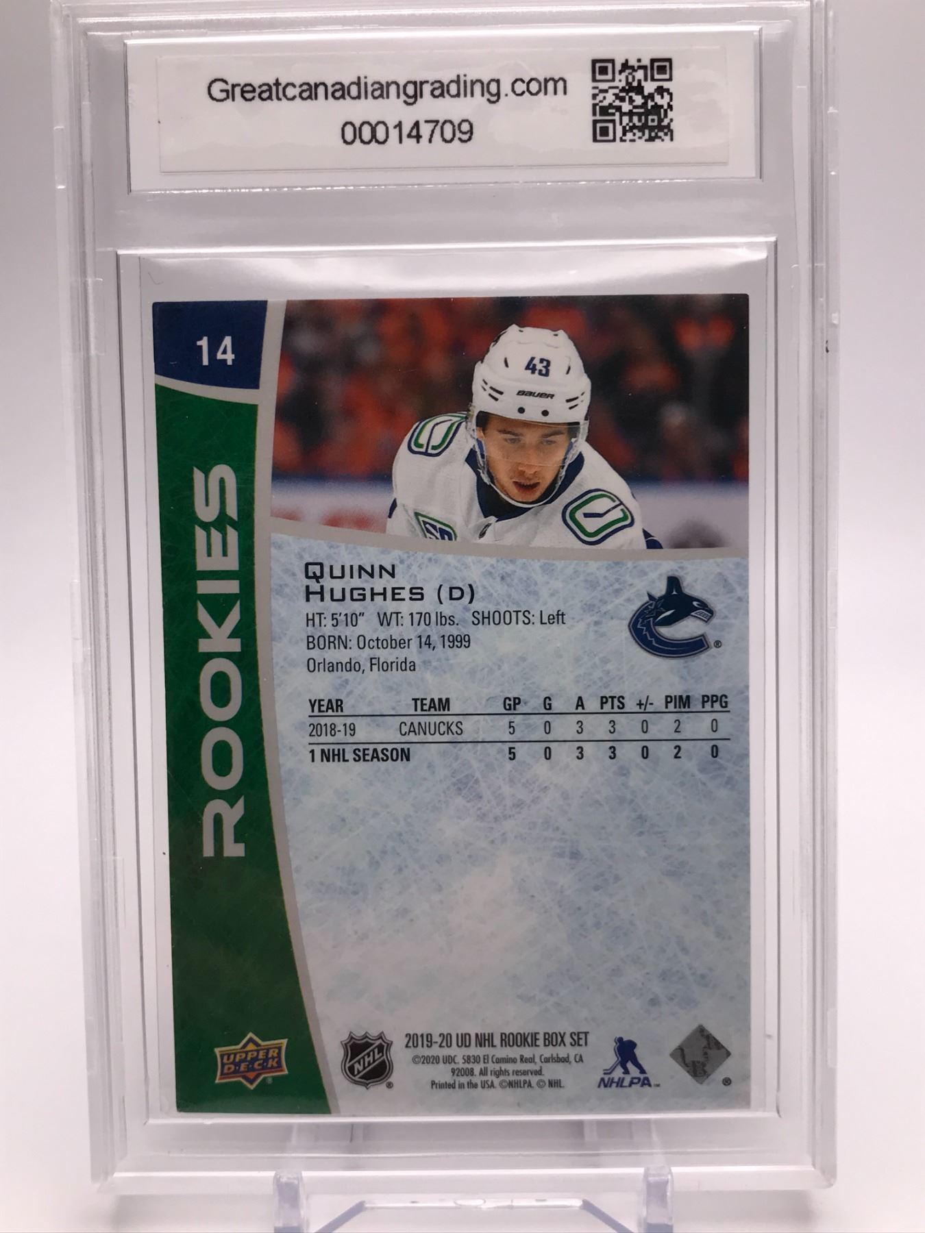 2019-20 UPPER DECK BOX SET NO.14 QUINN HUGHES ROOKIE CARD GCG GRADED 9.5
