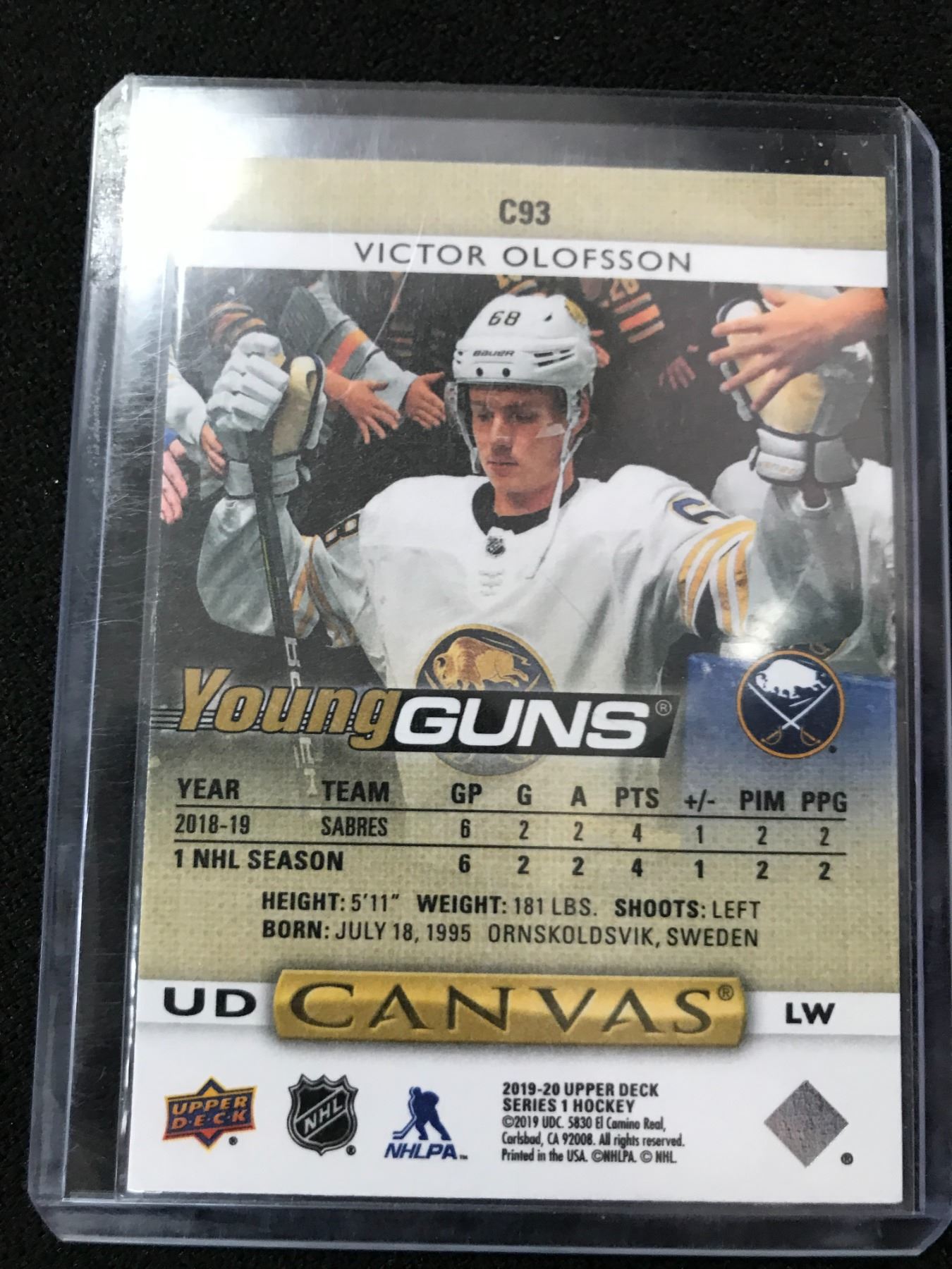 2019-20 UPPER DECK NO.C93 VICTOR OLOFFSON YOUNG GUNS UD CANVAS