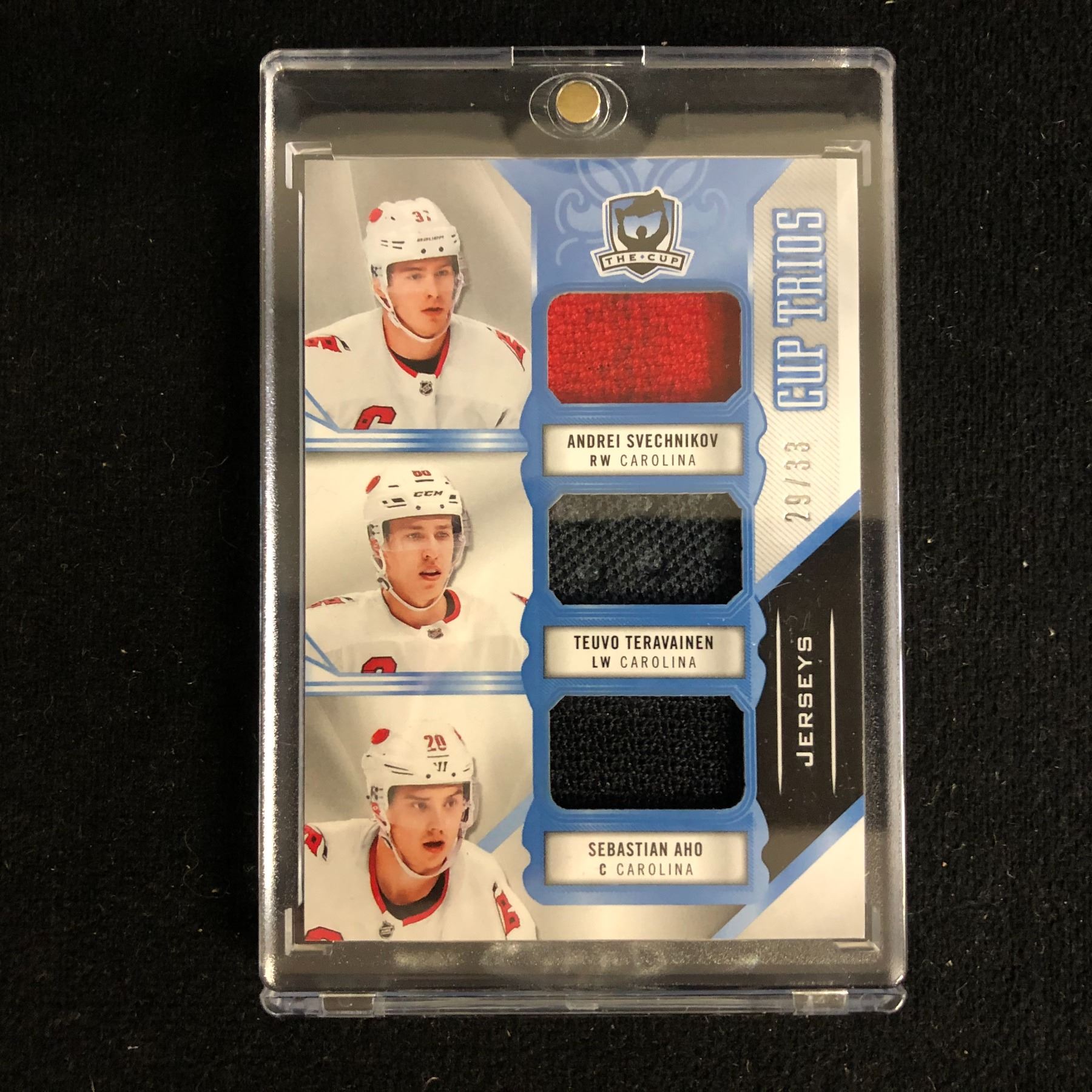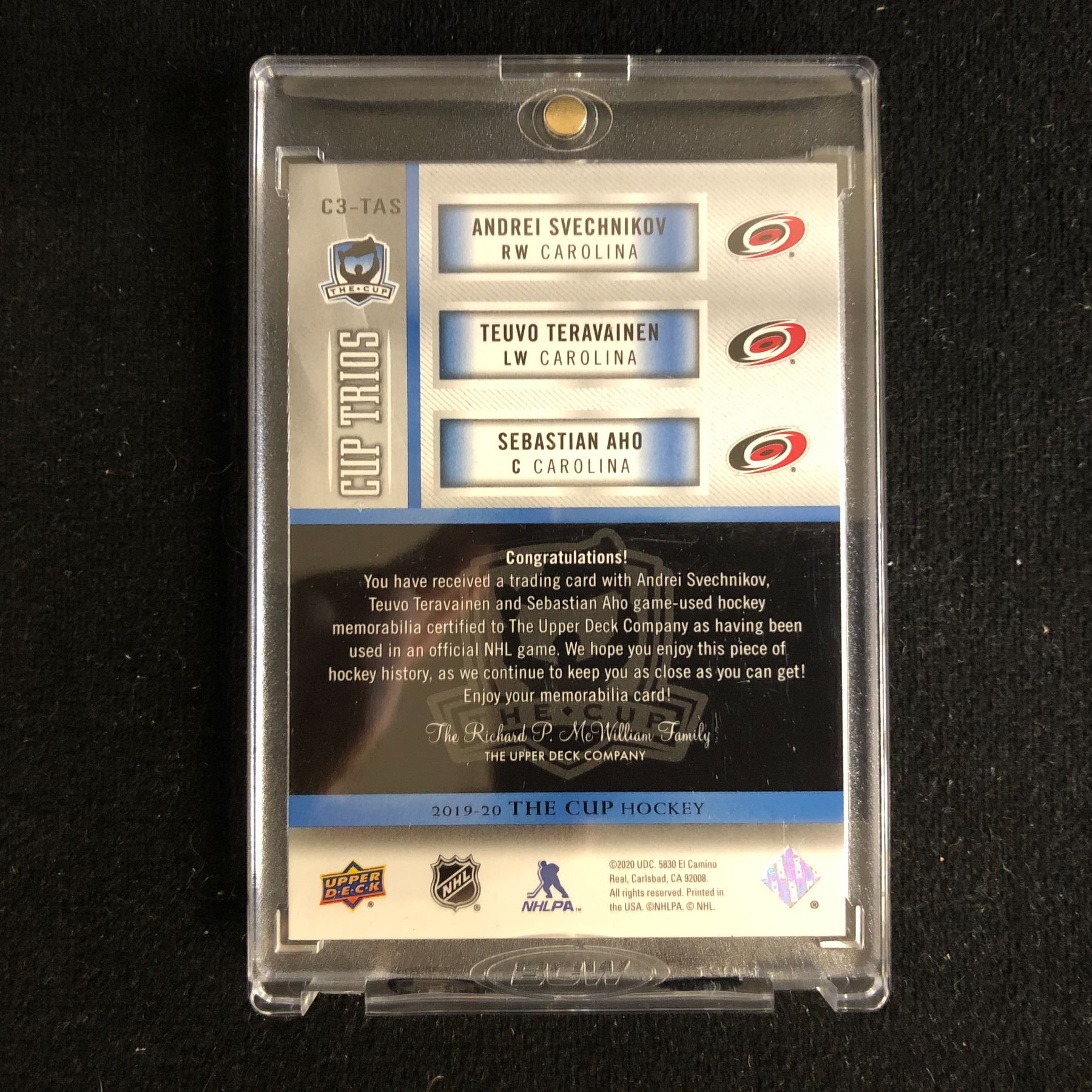 2019-20 UPPER DECK THE CUP HOCKEY #C3-TAS SVECHNIKOV/TERAVAINEN/AHO CUP TRIOS JERSEY PATCH 29/33