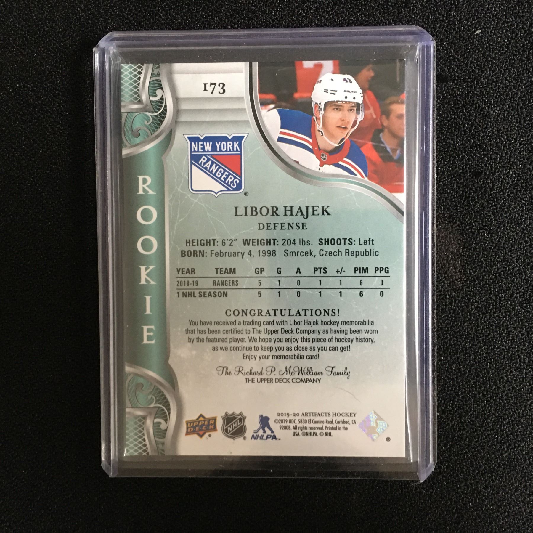 2019-20 Upper Deck Artifacts Rookie #173 Libor Hajek Patch 4/6