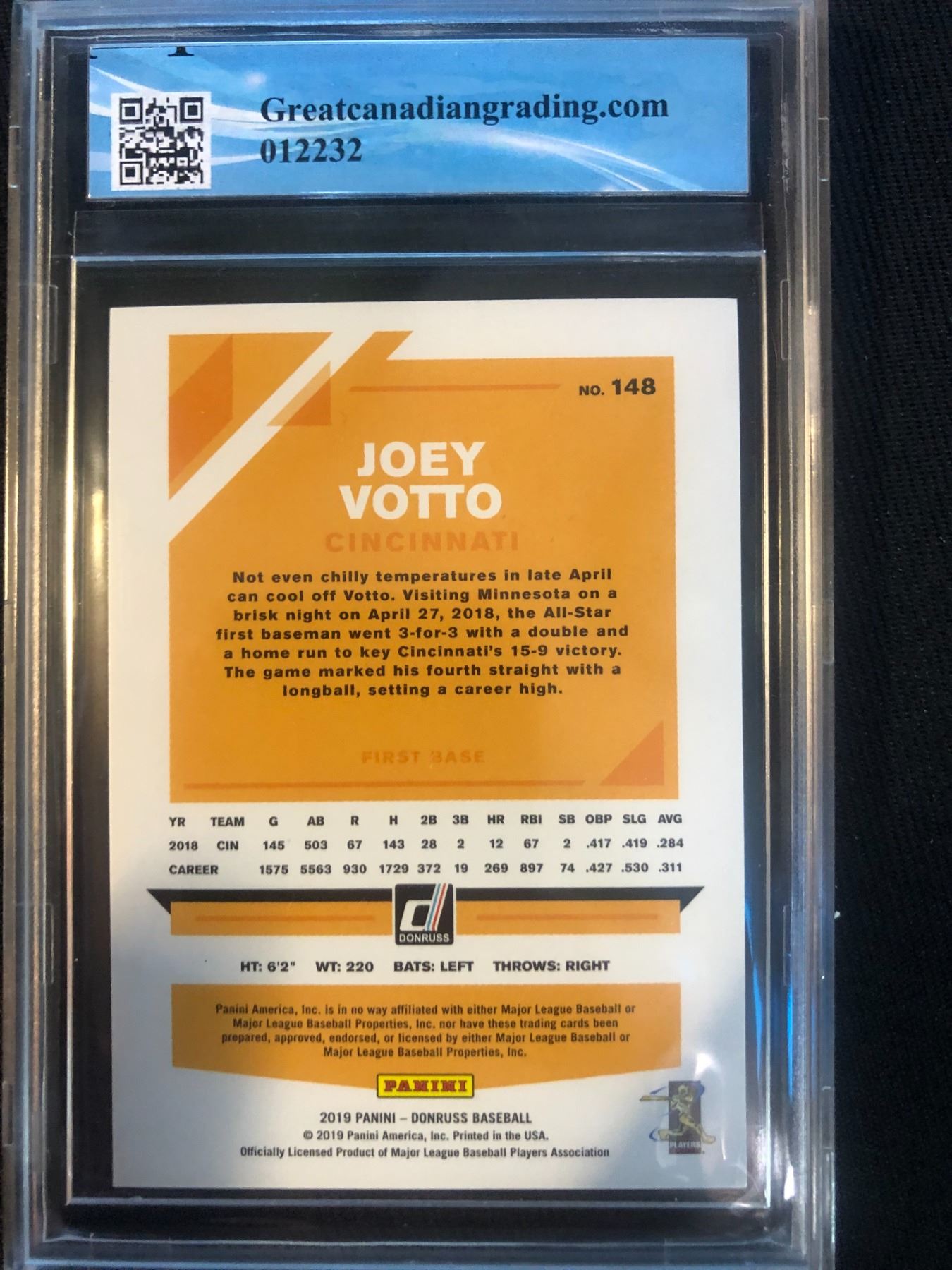 2019 PANINI DONRUSS NO.148 JOEY VOTTO (GCG 9.5)