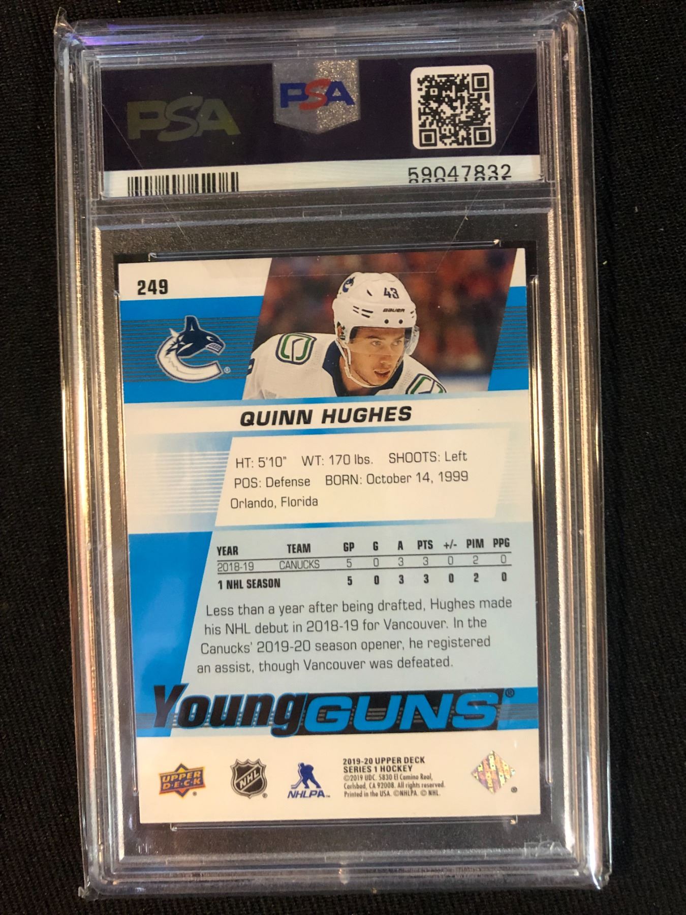 2019 UPPER DECK QUINN HUGHES YOUNG GUNS RC (PSA 9)