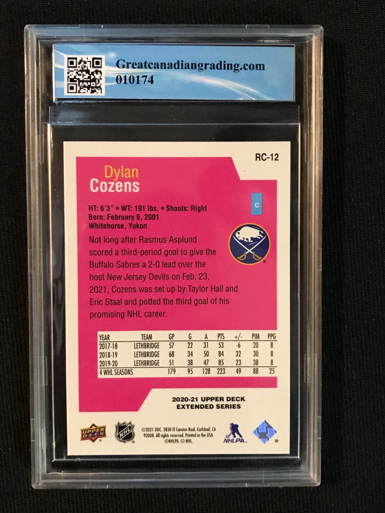 2020-21 UD SPECIAL EDITION NO.PC-12 DYLAN COZENS ROOKIE CLASS (GCG 9)