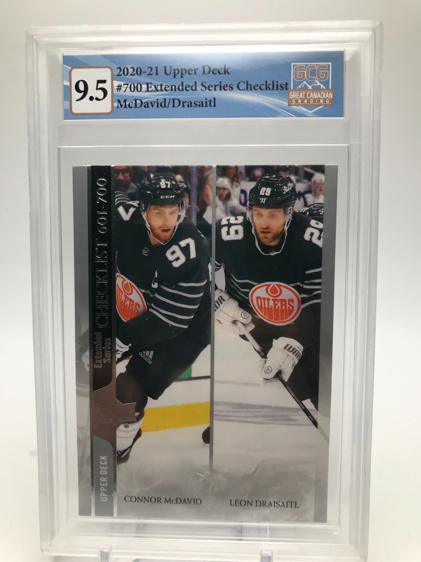 2020-21 UPPER DECK NO.700 EXTENDED SERIES CHECKLIST MCDAVID/DRASAITL GCG GRADED 9.5