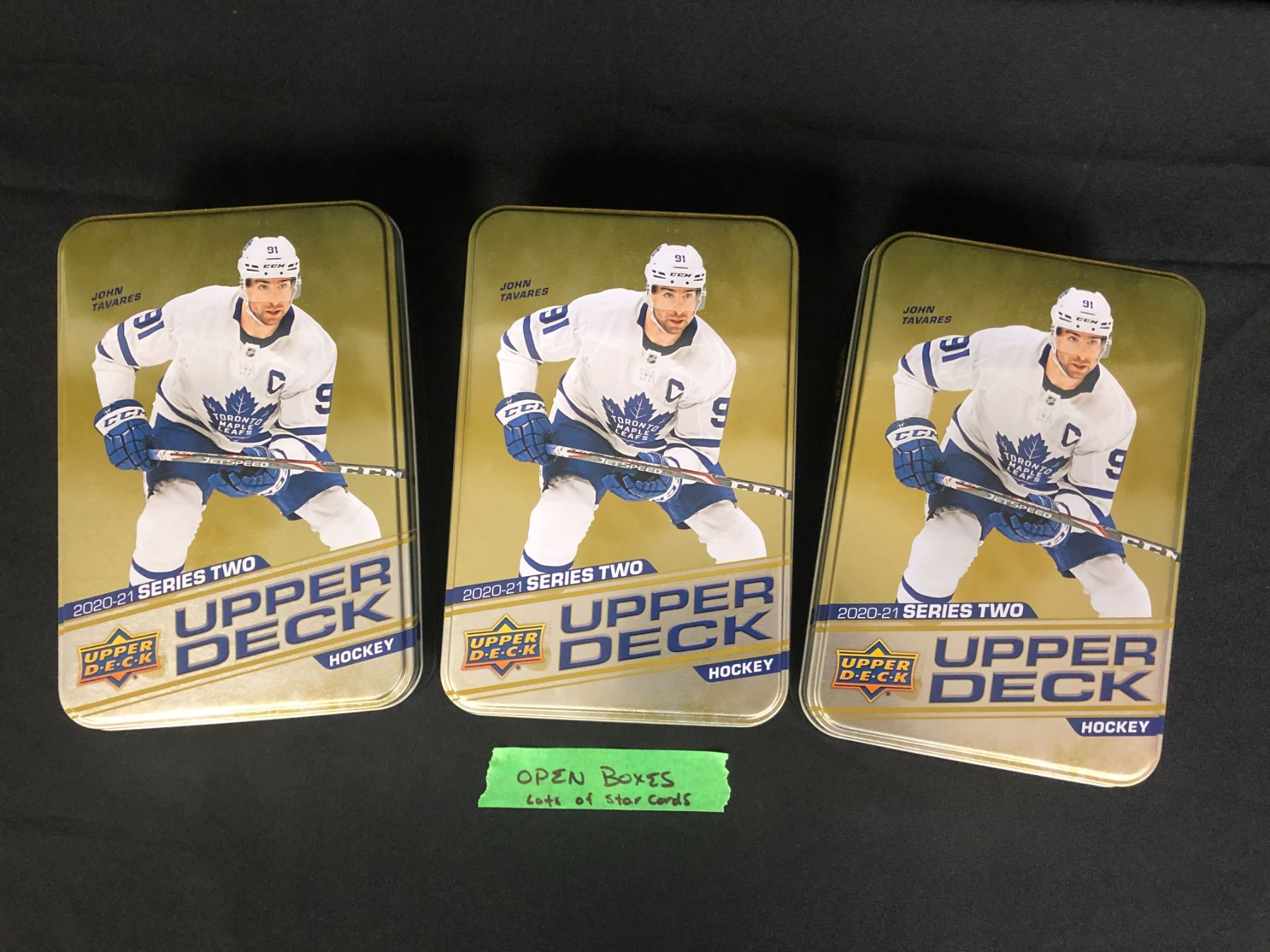 2020-21 UPPER DECK SERIES TWO HOCKEY TINS X3 (OPEN BOXES - LOTS OF STAR CARDS)