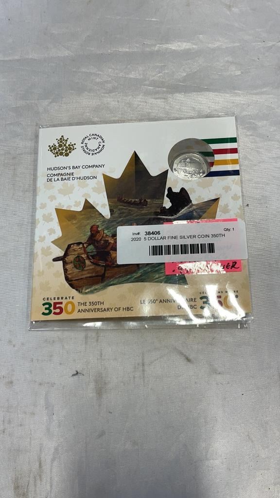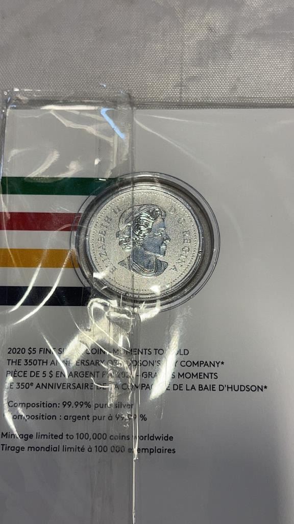 2020 5 DOLLAR FINE SILVER COIN 350TH ANNIVERSARY HUDSONS BAY CO .9999 SILVER