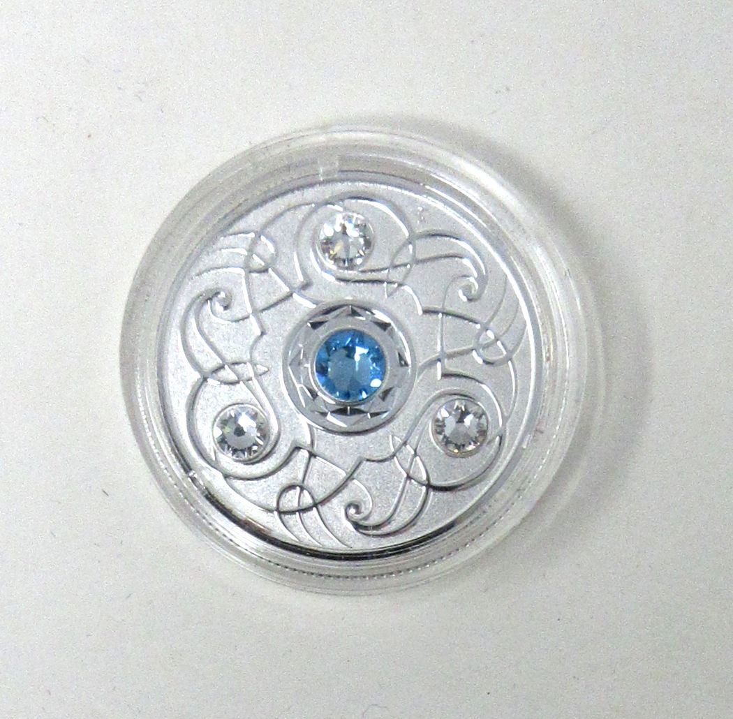 March. 7.96 grams of silver with Swarovski Crystal Elements. Ltd. Edition of 5,000. In display box with mint certificate. Tax exempt.