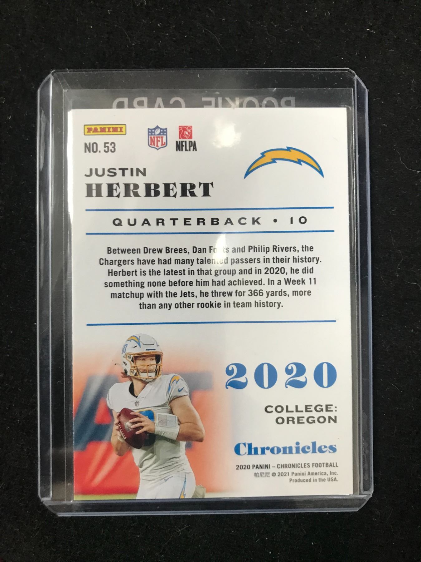 2020 PANINI CHRONICLES NO.53 JUSTIN HERBERT ROOKIE CARD
