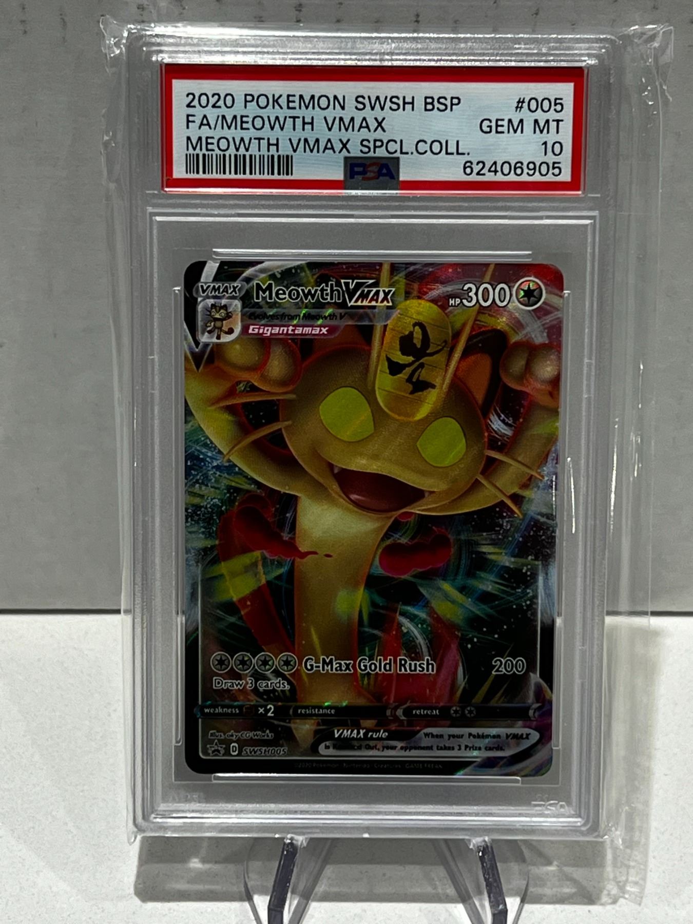2020 POKEMON SWSH BSP NO.005 FA/MEOWTH VMAX SPCL.COLL PSA GRADED 10