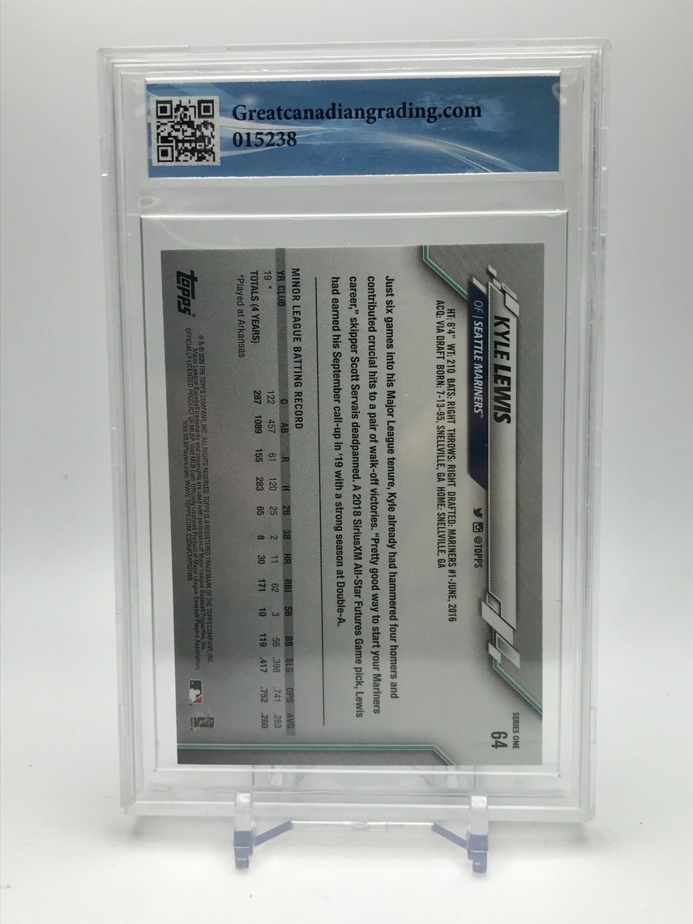 2020 TOPPS #64 KYLE LEWIS ROOKIE CARD GCG GRADED 9.5
