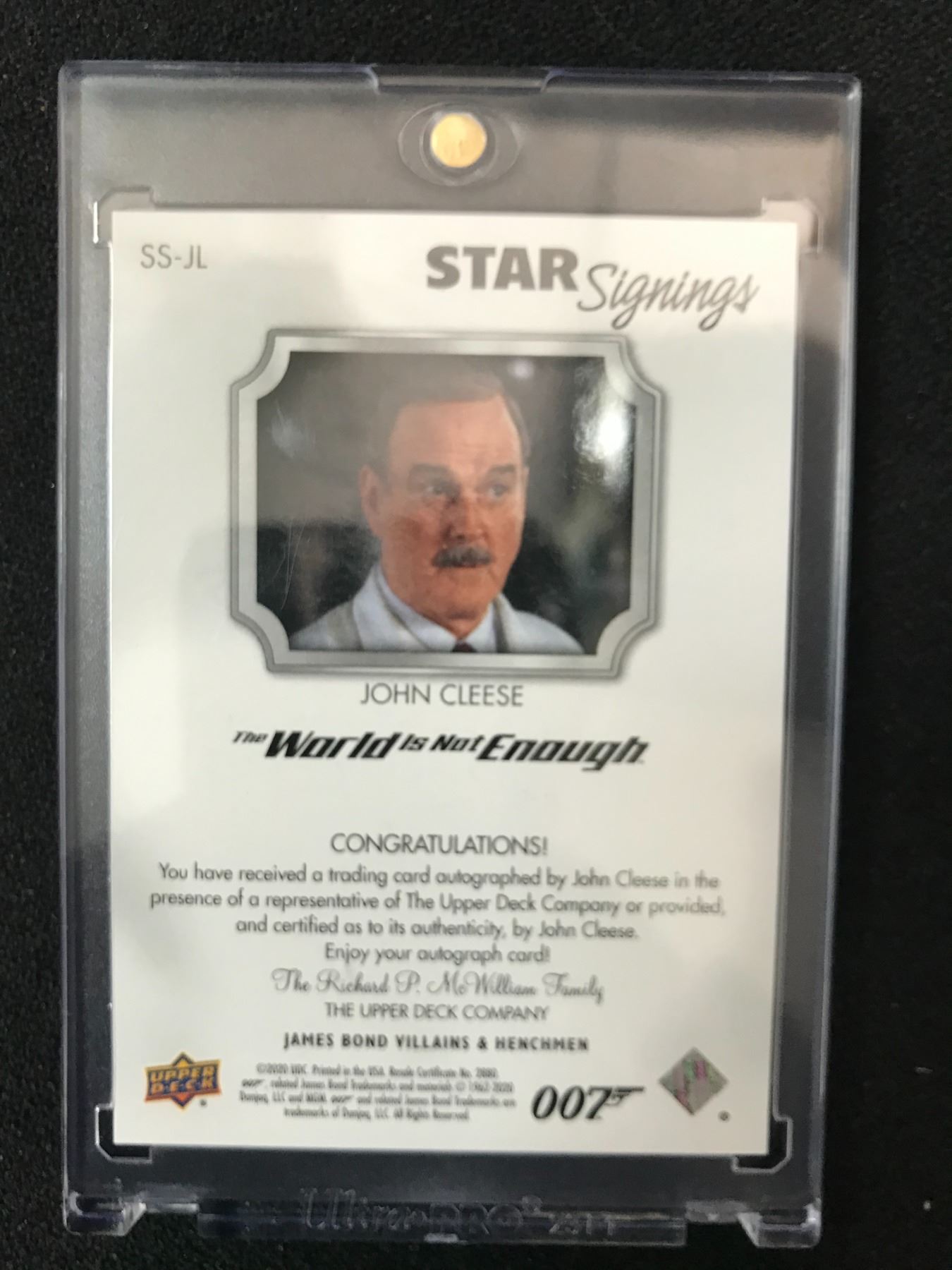 2020 UPPER DECK STAR SIGNINGS 007 JOHN CLEESE AS Q SIGNED THE WORLD IS NOT ENOUGH CARD