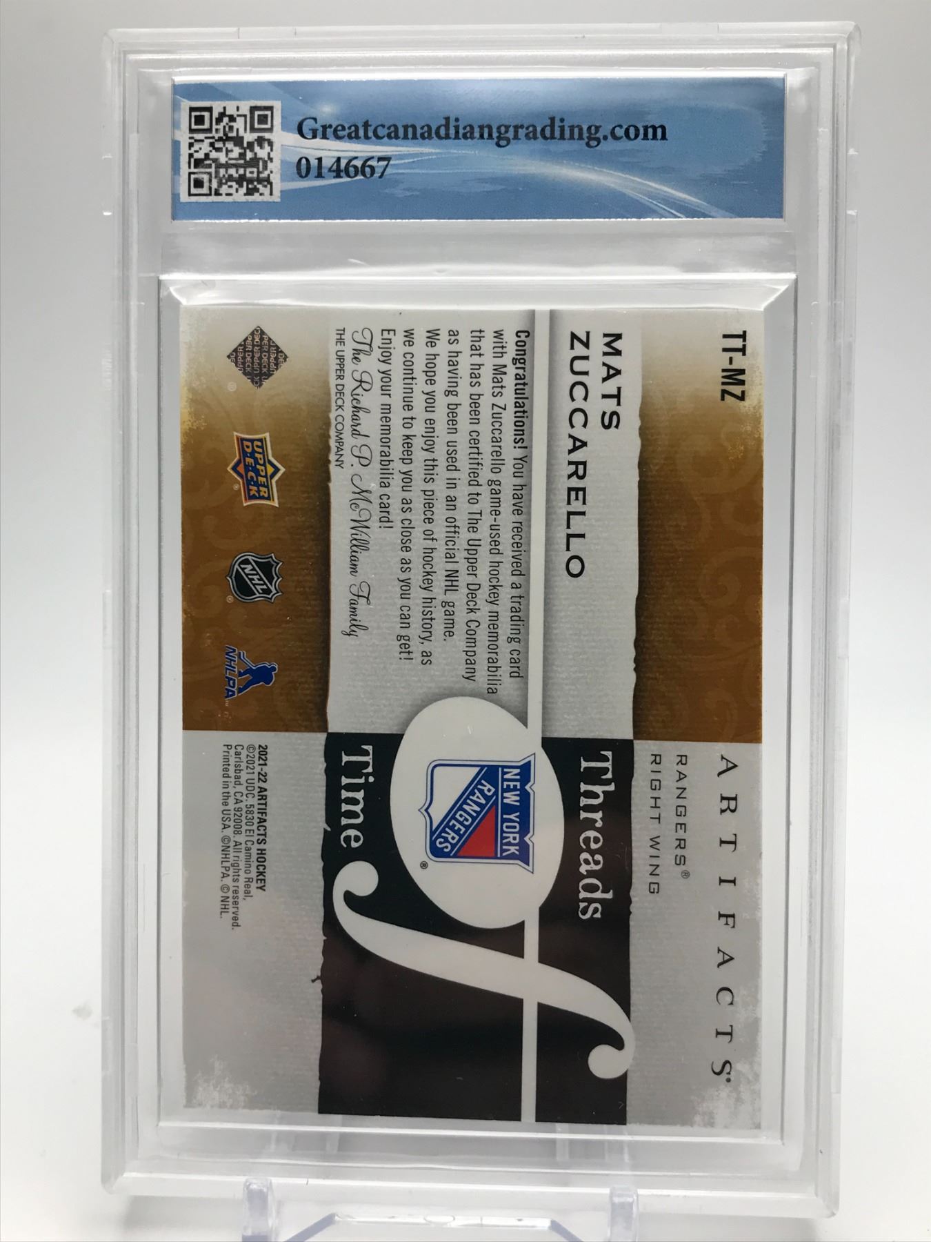 2021-22 ARTIFACTS NO.TT-MZ MATS ZUCCARELLO THREADS OF TIME GCG GRADED 9.5