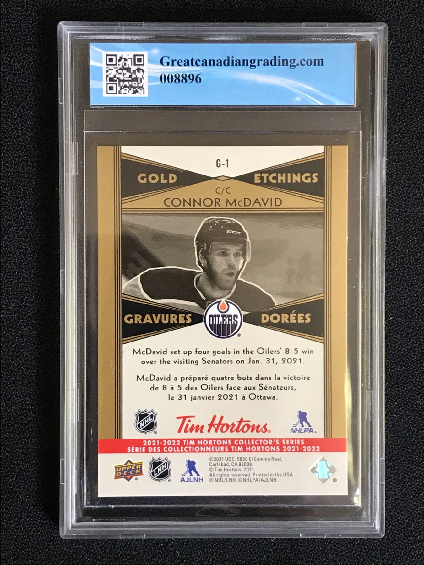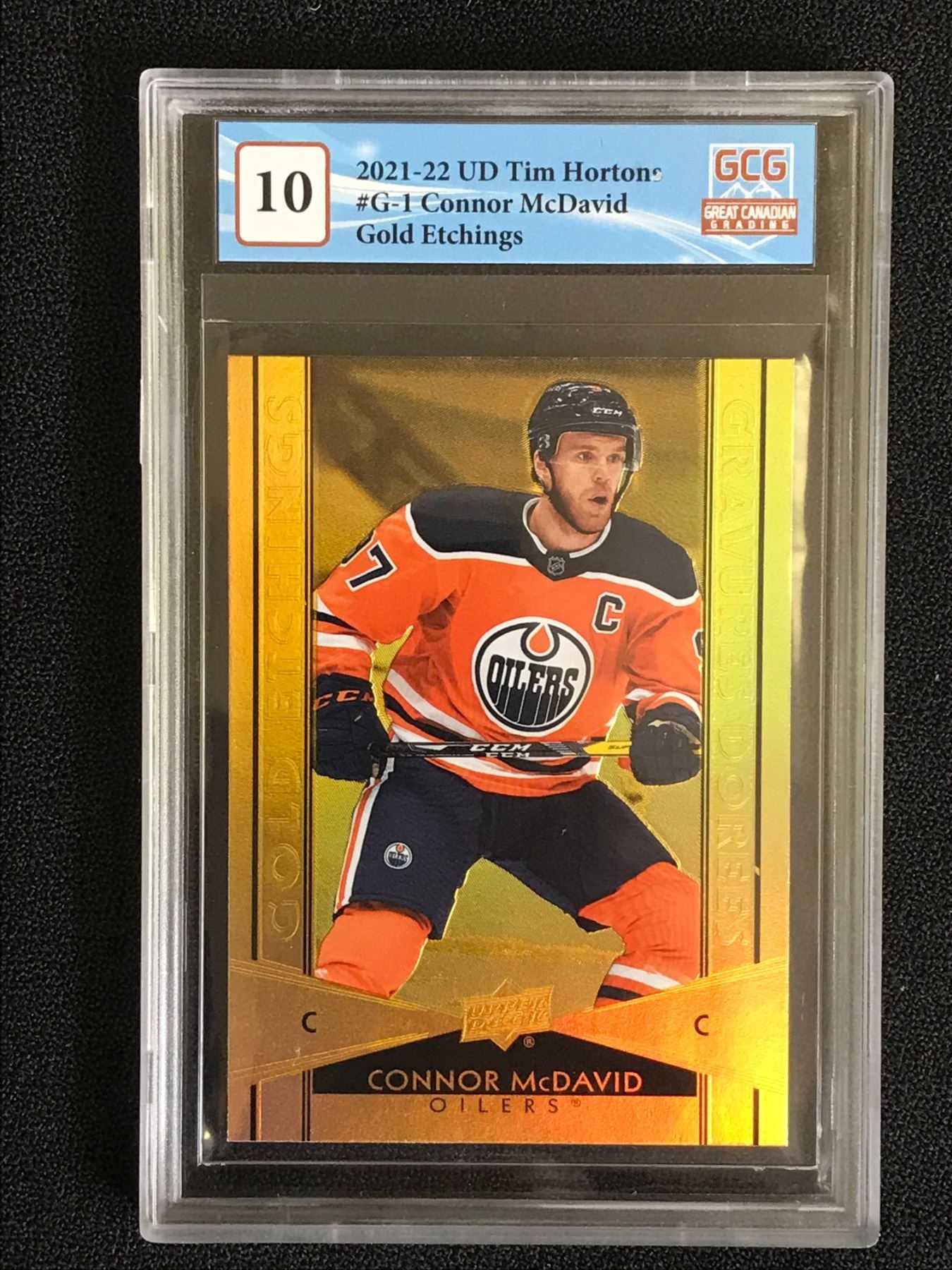 2021-22 UD TIM HORTONS NO.G-1 CONNOR MCDAVID GOLD ETCHINGS (GCG 10)