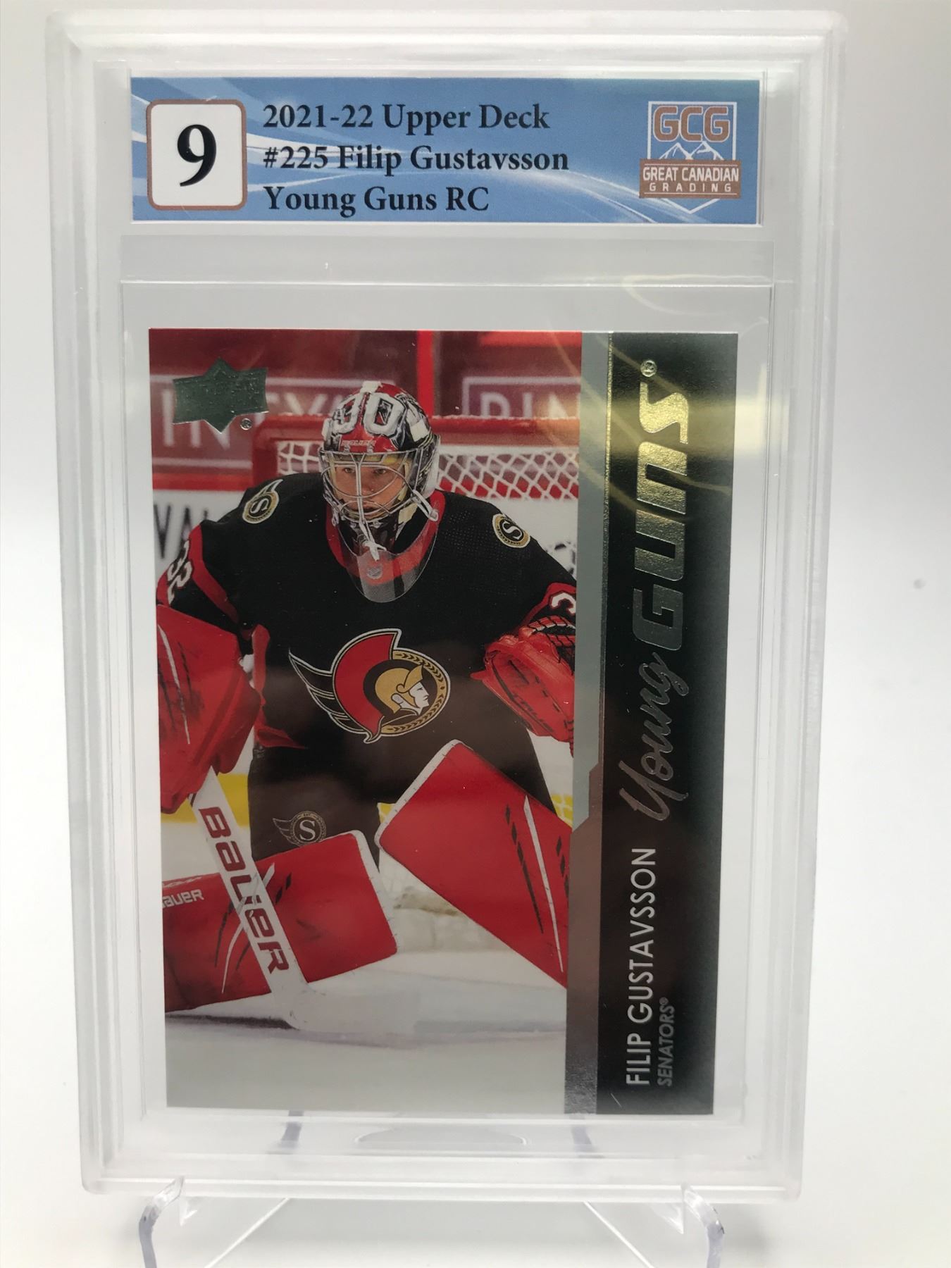 2021-22 UPPER DECK NO.255 FILIP GUSTAVSSON YOUNG GUNS RC GCG GRADED 9