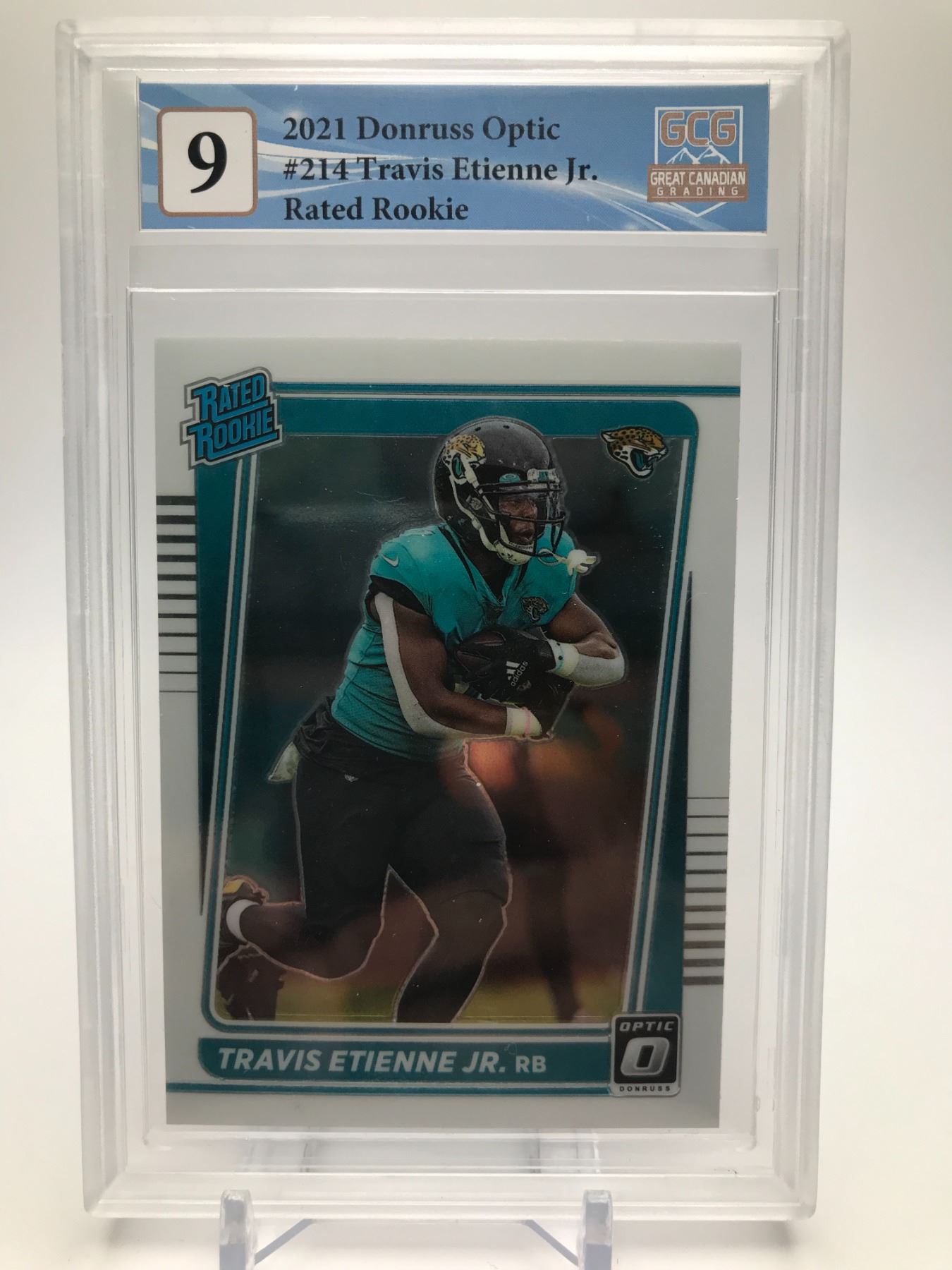 2021 DONRUSS OPTIC NO.214 TRAVIS ETIENNE JR. RATED ROOKIE GCG GRADED 9