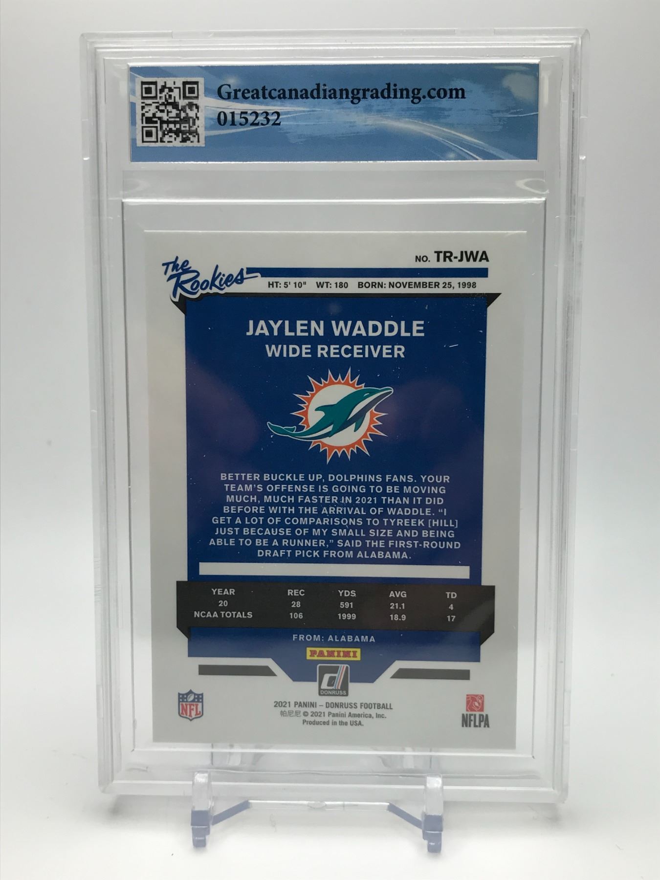 2021 DONRUSS #TR-JWA JAYLEN WADDLE THE ROOKIES GCG GRADED 9.5