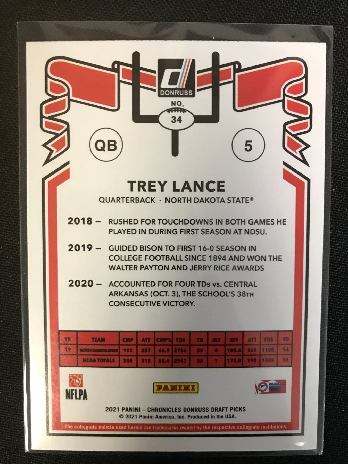 2021 PANINI CHRONICLES DONRUSS DRAFT PICKS #34 TREY LANCE RC