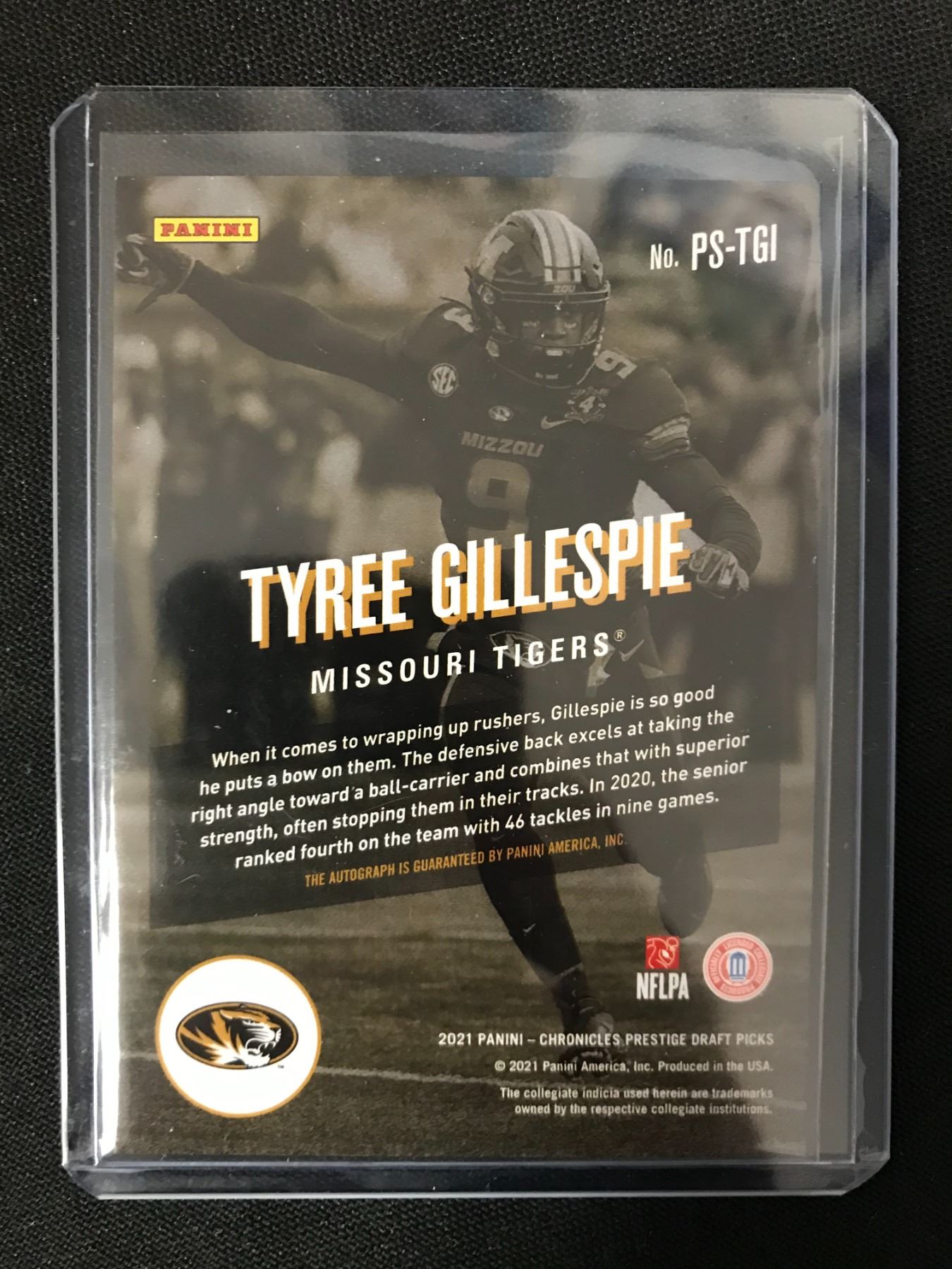 2021 PANINI CHRONICLES PRESTIGE DRAFT PICKS FOOTBALL #PS-TGI TYREE GILLESPIE RC AUTO