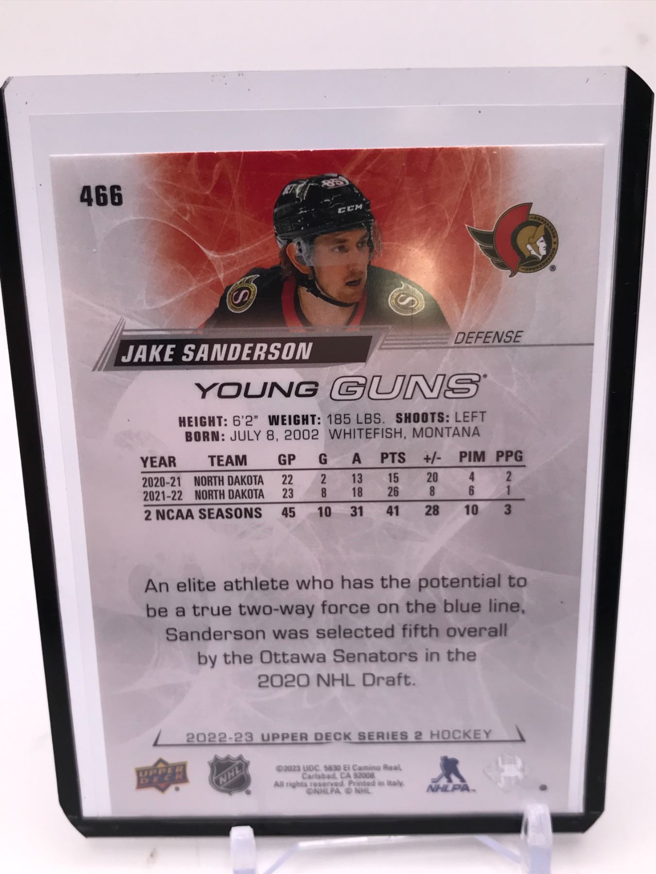 2022-23 UPPER DECK JAKE SANDERSON YOUNG GUNS ROOKIE CARD