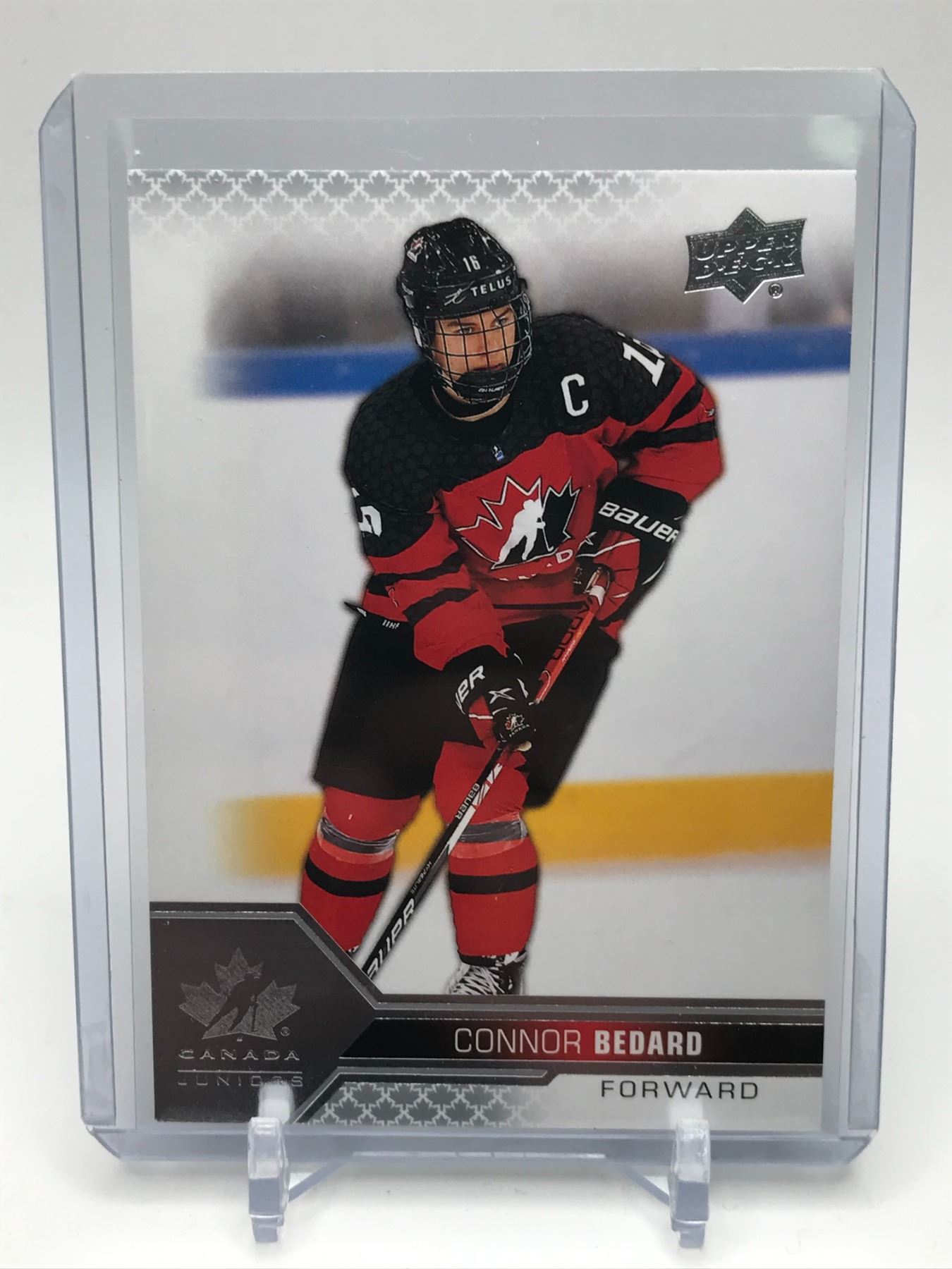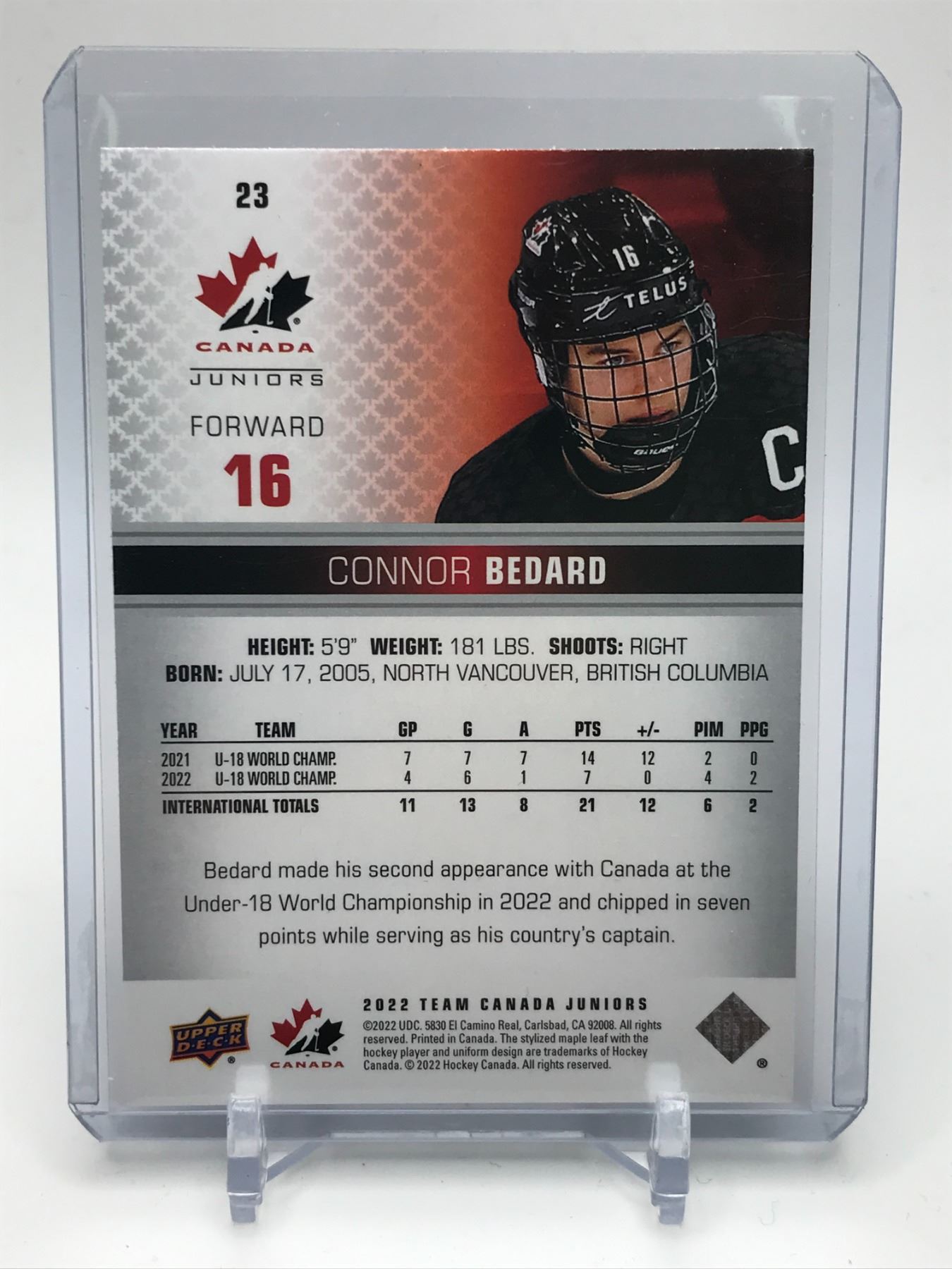 2022 UD TEAM CANADA JUNIORS NO. 23 CONNOR BEDARD PRE-ROOKIE CARD