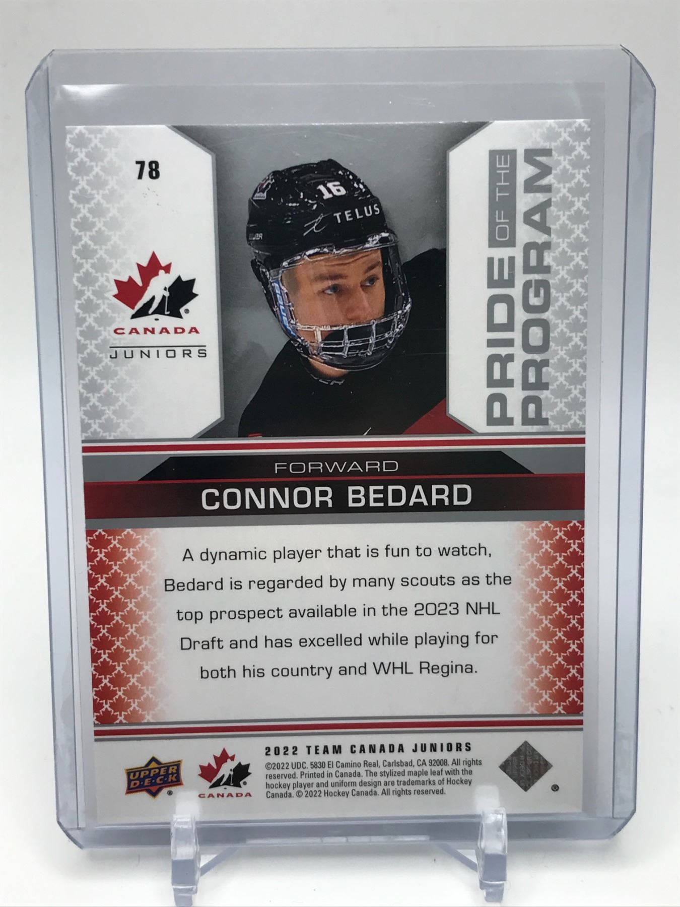 2022 UD TEAM CANADA JUNIORS NO. 78 CONNOR BEDARD PRE-ROOKIE CARD