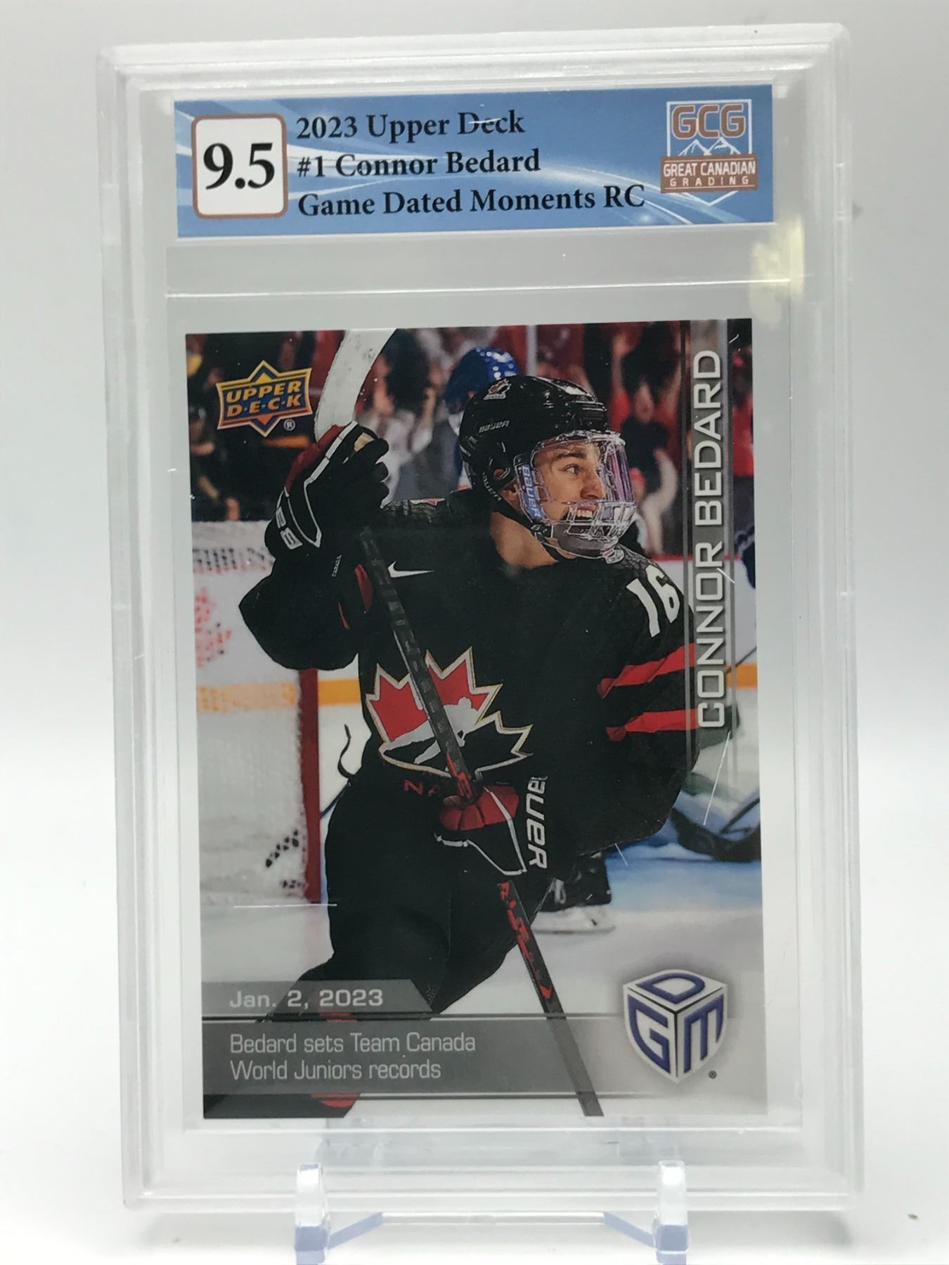 2023 UPPER DECK NO.1 CONNOR BEDARD GAME DATED MOMENTS GCG GRADED 9.5