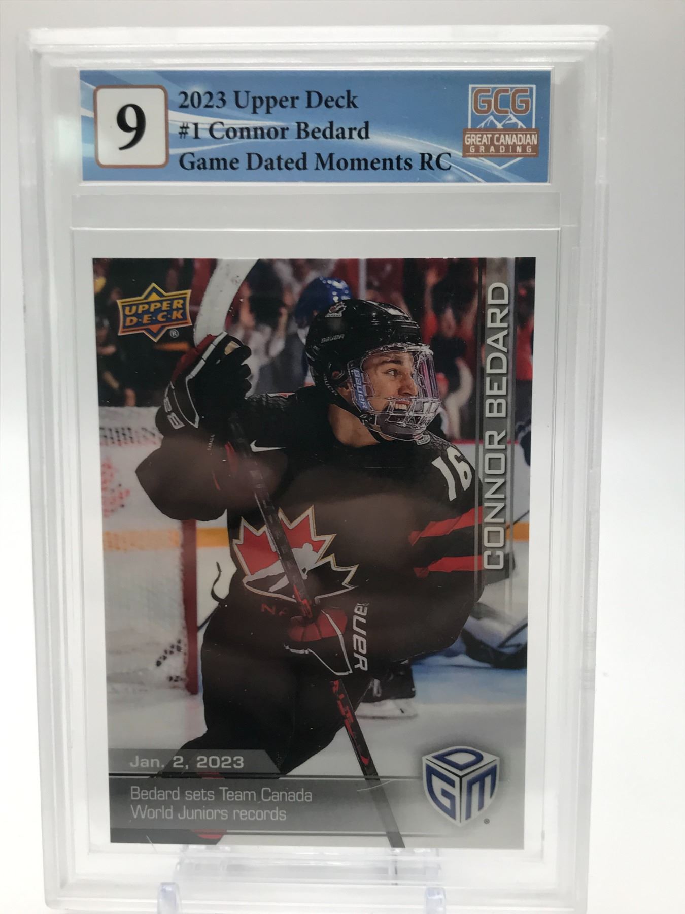 2023 UPPER DECK NO.1 CONNOR BEDARD GAME DATED MOMENTS RC GCG GRADED 9