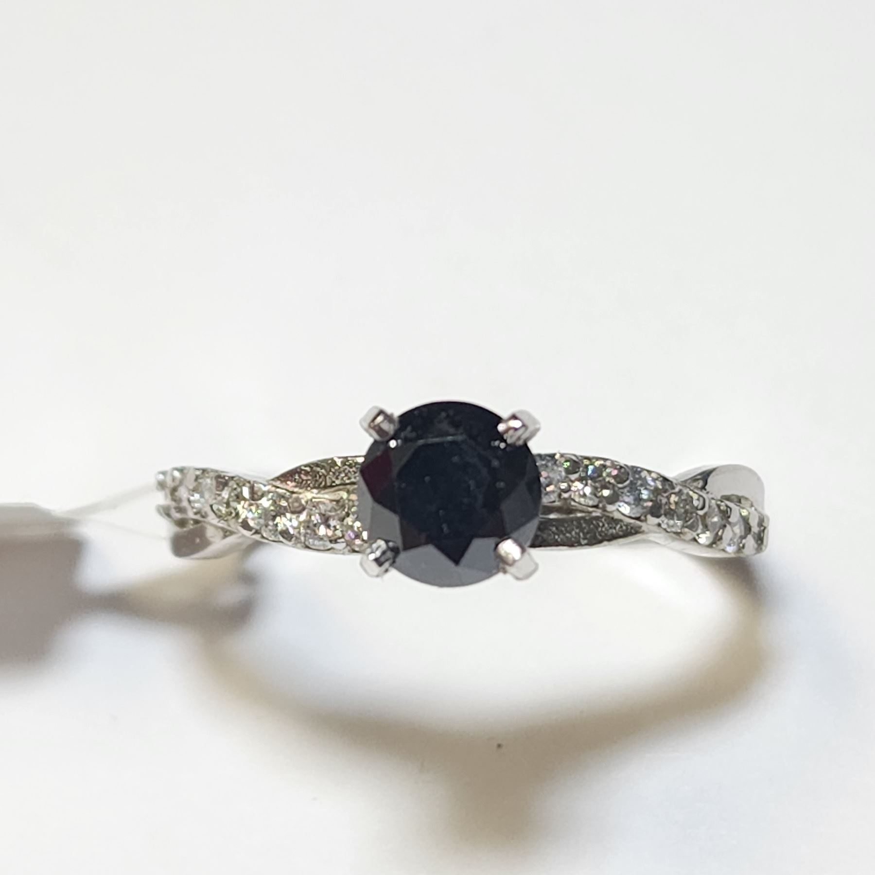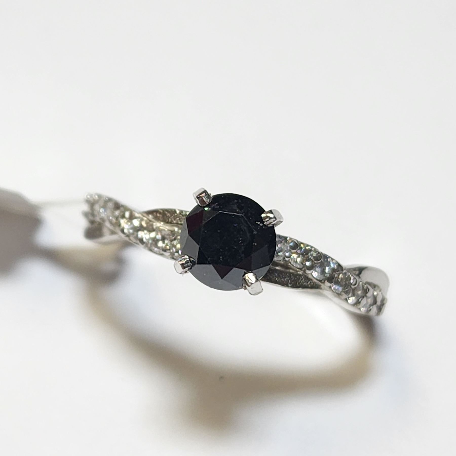 14K White Gold Black Diamond(0.6ct) Diamond(0.15ct) Ring (~Size 6.5)(Ring is resizable for $40) (~weight 2.13g), Made in Canada, Appraised Retail $2075
