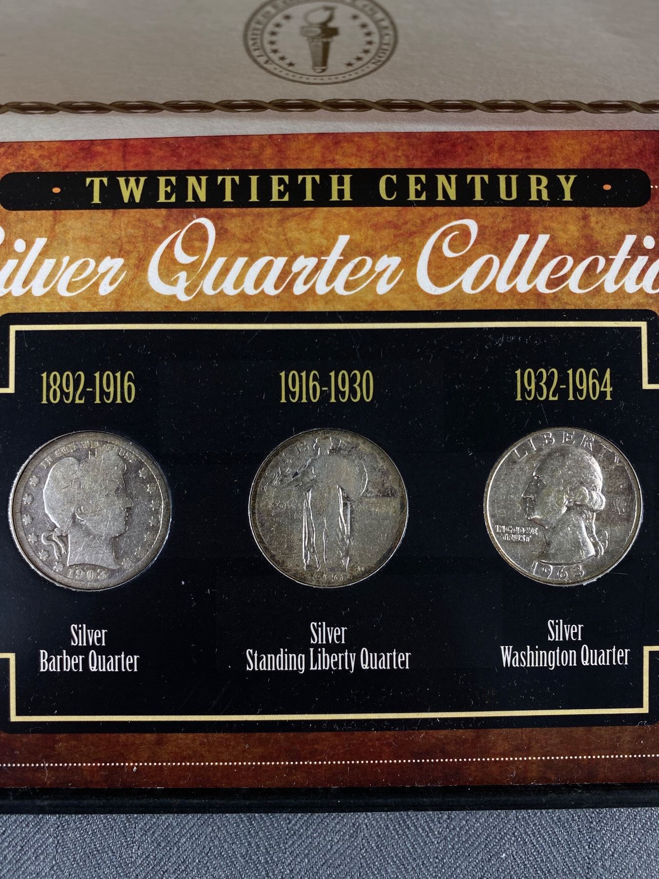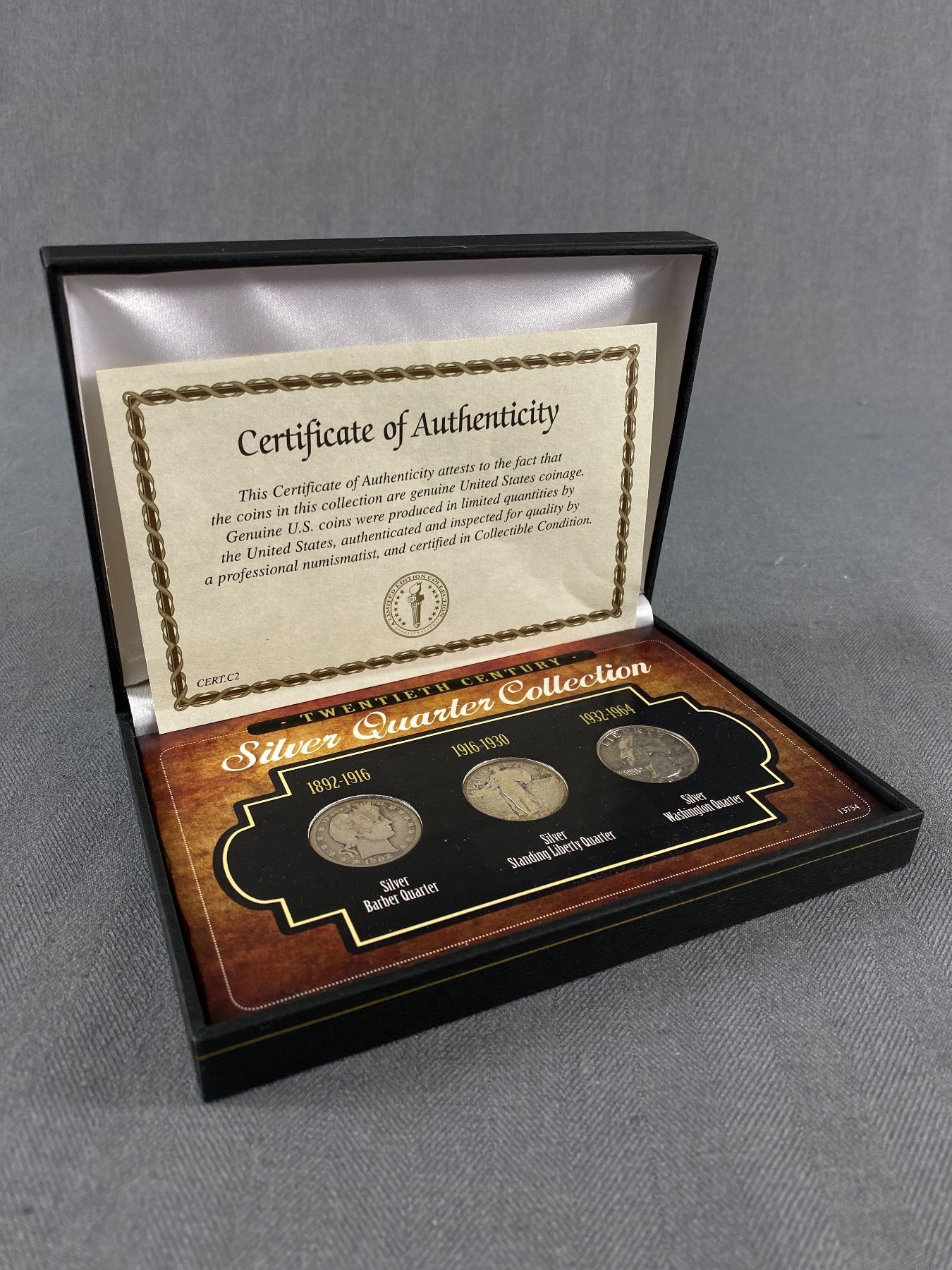 20th Century Silver Quarter Colllection In Display Box w/ COA