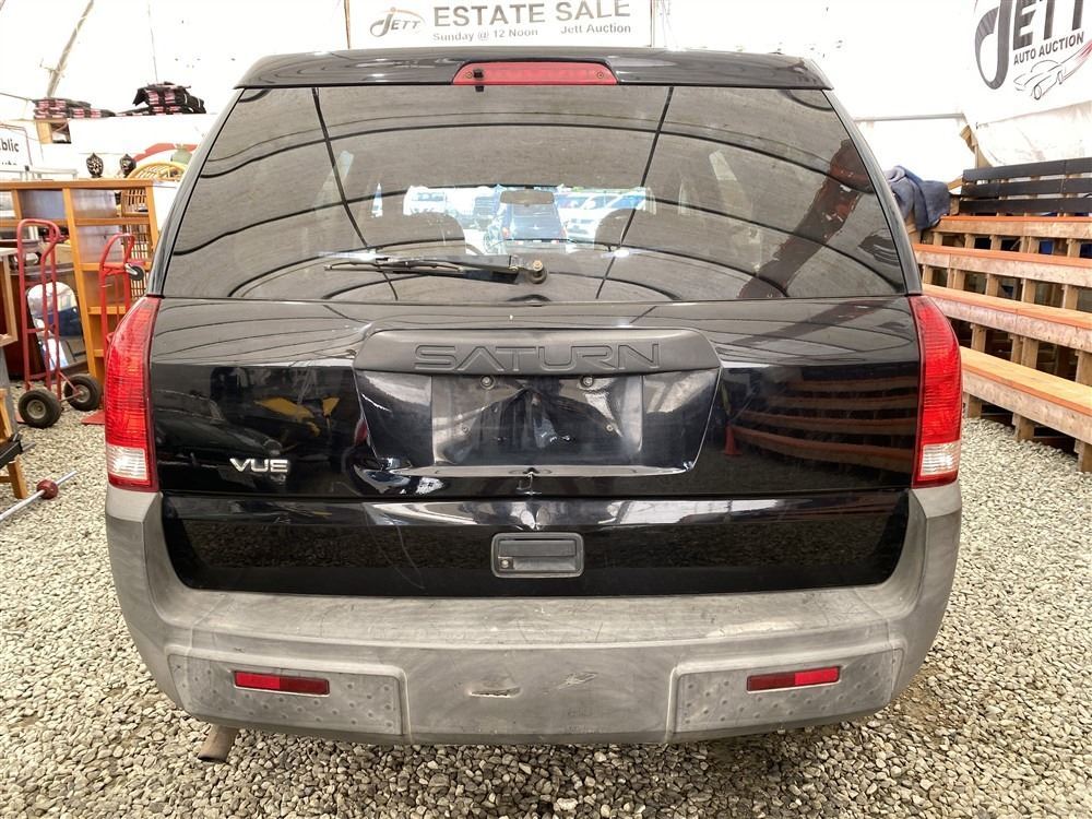 "NO RESERVE" 2003 SATURN VUE, BLACK, 230779 KMS, 2.2L, 4 CYLINDER, GASOLINE, AUTOMATIC, TRANSMISSION, FRONT WHEEL DRIVE, 5 PASSENGER. AIR CONDITIONING, TILT STEERING, DUAL AIR BAGS, CD PLAYER, CHIP OR CRACK IN WINDSHIELD, . DECLARATIONS: EX-OUT OF PROVINCE 1 ACCIDENTS 0 GLASS CLAIM, TOTALLING $0. SERVICE HISTORY SHOWS0 RECORDS. AUCTION NOTES: NOT IN MOVEABLE CONDITION REAR WHEEL NEEDS IMMEDIATE ATTENTION, STOCK #: B877822 5GZCZ33D535877822 NOT MECHANICALLY INSPECTED, NOT SUITABLE FOR TRANSPORTATION, MUST TOW.
