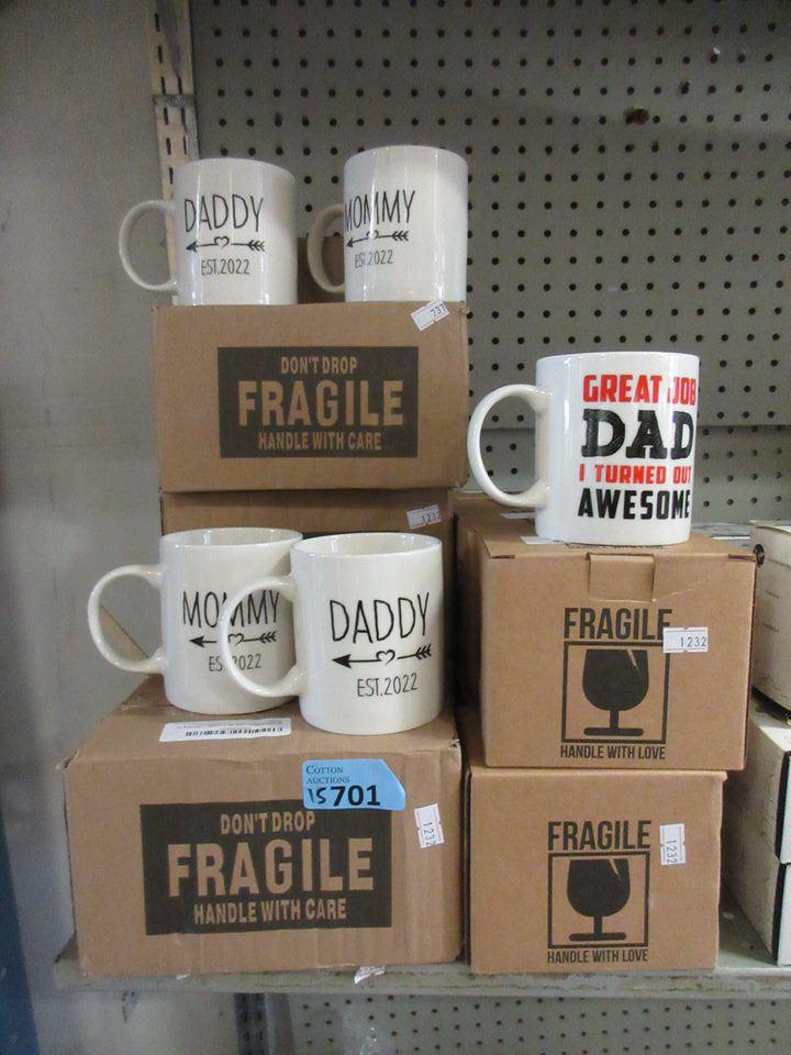 15 Boxes. 8 Boxes each have one "Great Job Dad I Turned Out Awesome" mug & 7 Boxes each have 1 Mommy & 1 Daddy mug.