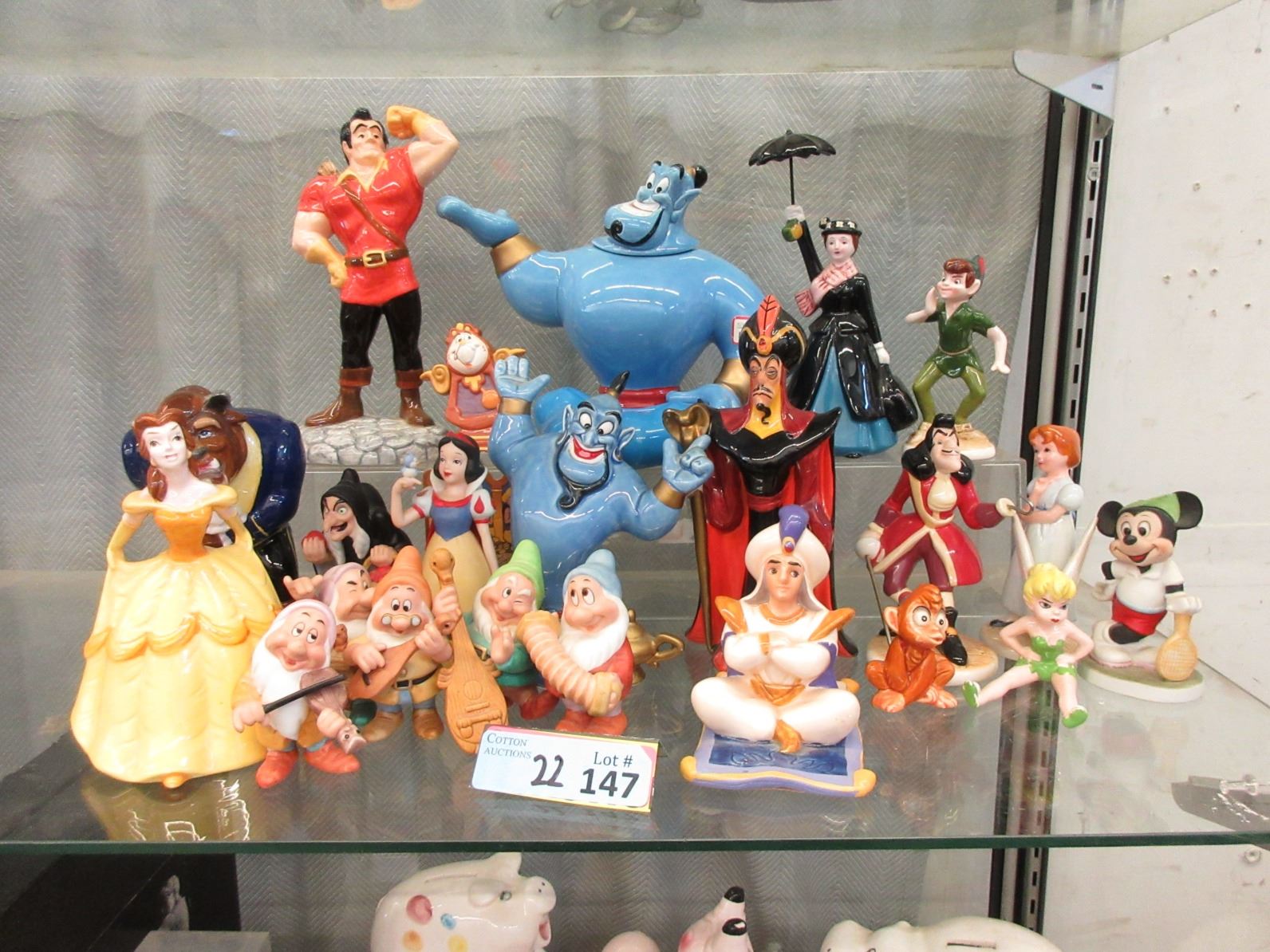 China, porcelain & ceramic. Largest piece is the Prince from Beauty and the Beast (9 tall x 5 wide).Tea Pot is made by Schmid and has a small chip on the inside of the top.