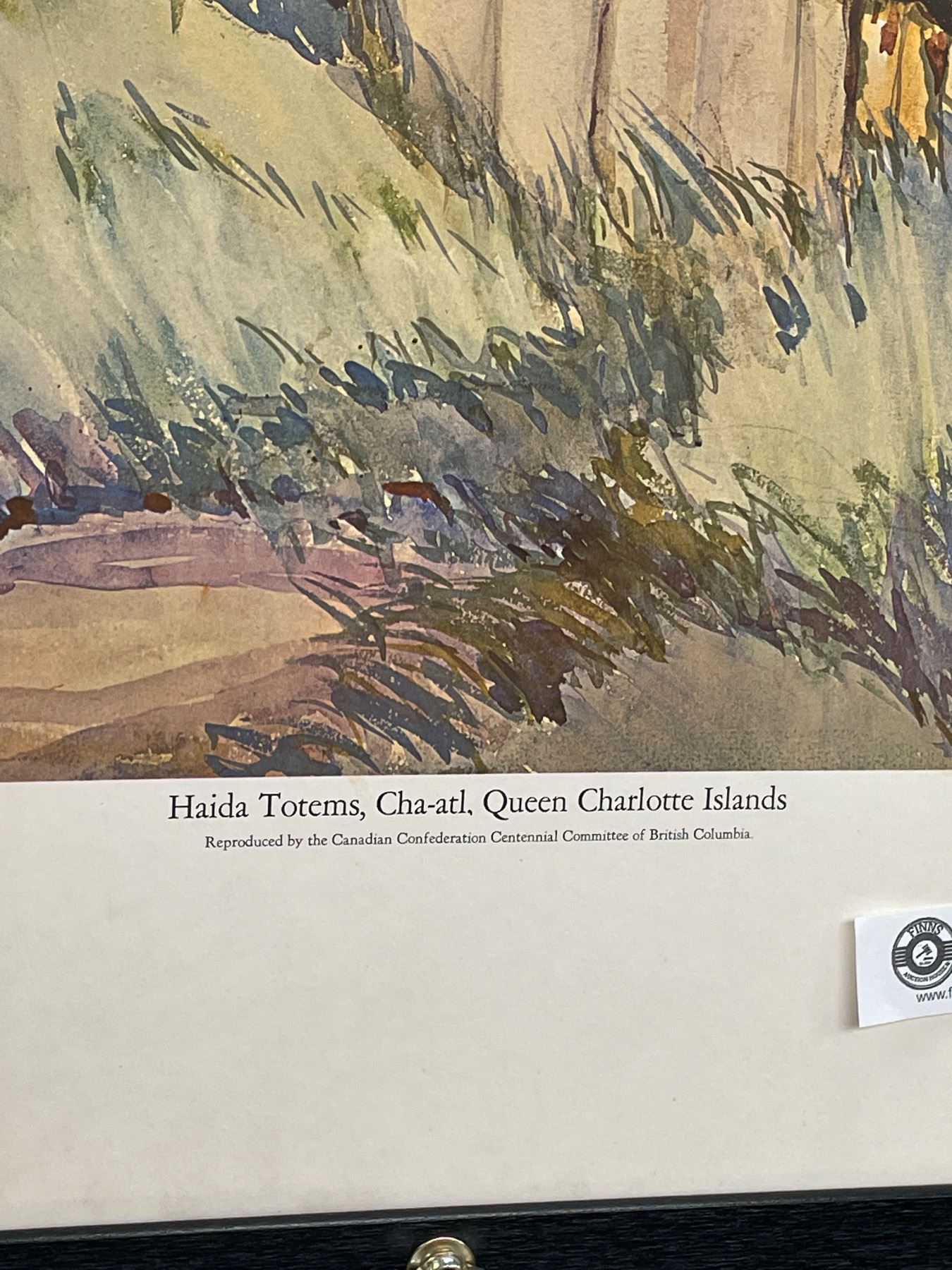 22 by 34 1967 Re-Print Copy of an Emily Carr Painting 1912 Haida Totems Cha-atl Queen Charlotte Islands