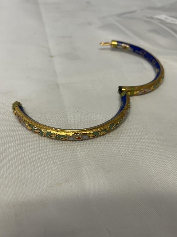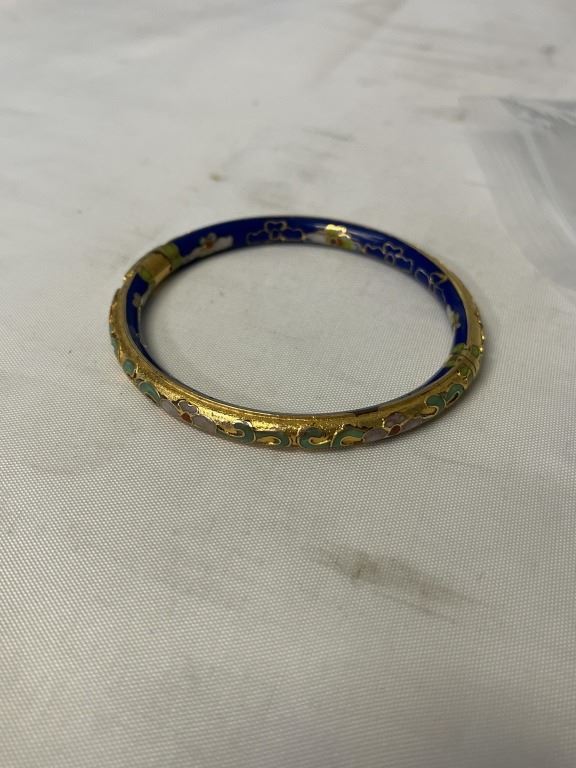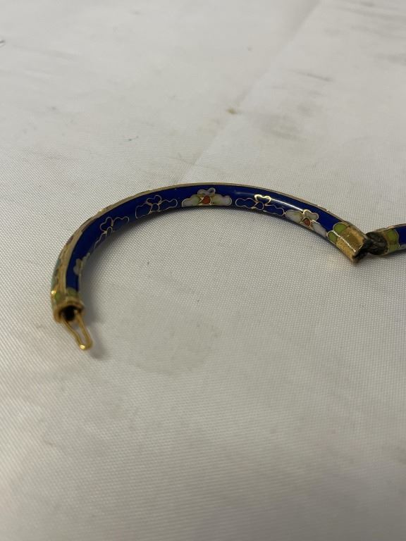 22K GOLD PLATED VINTAGE COBALT BLUE ENAMEL HINGED BANGLE, UNMARKED