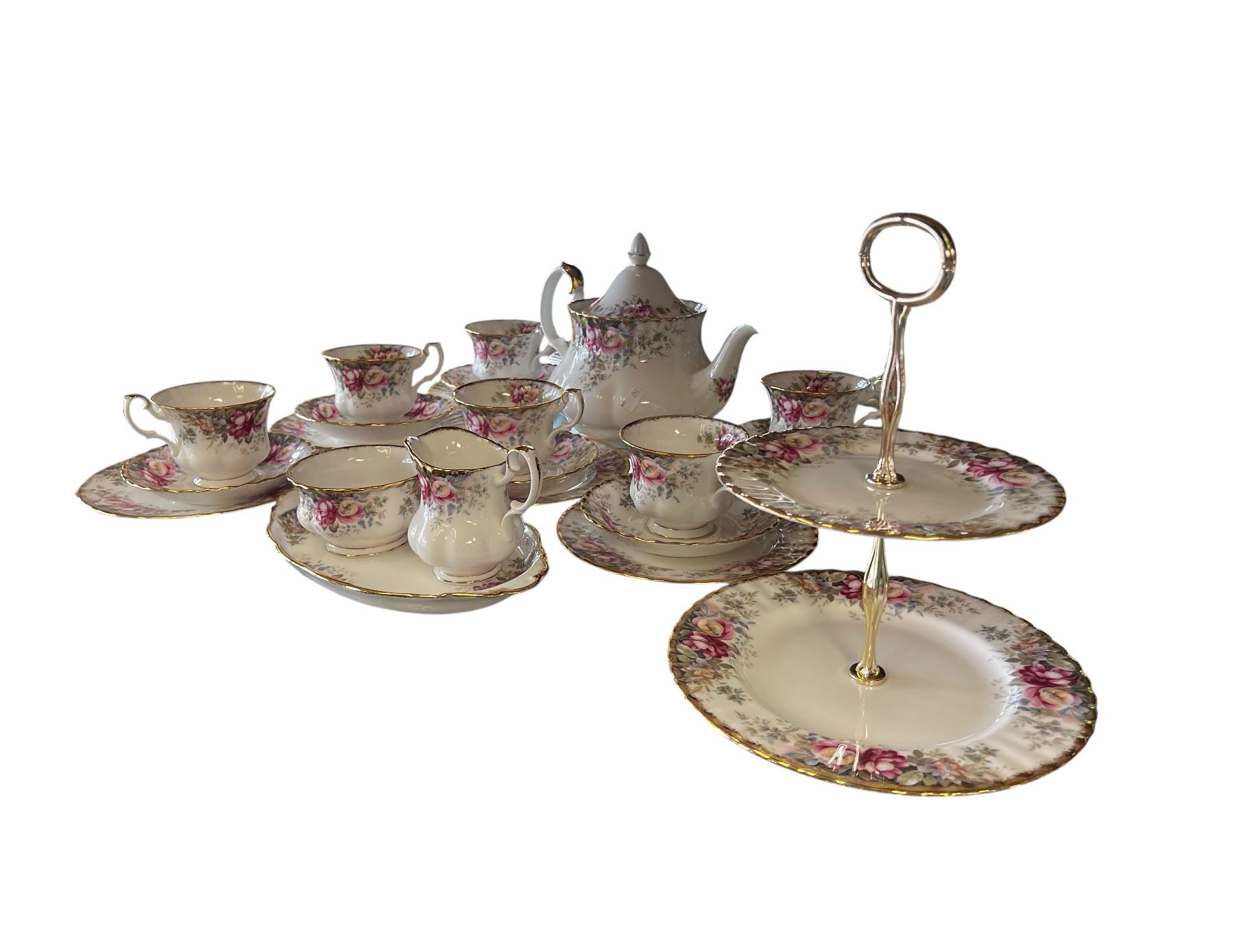 23x Pieces Of Vintage Royal Albert Autum Roses Chinaware: Cake Plate, Teapot, Tea Cups, Saucers, & More