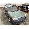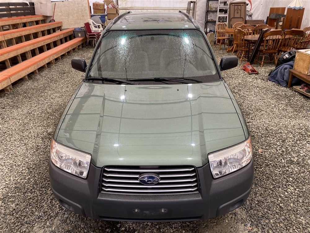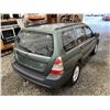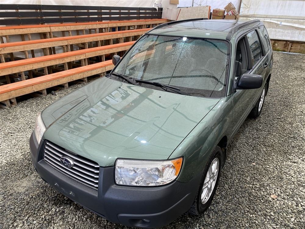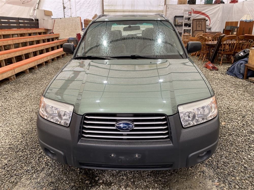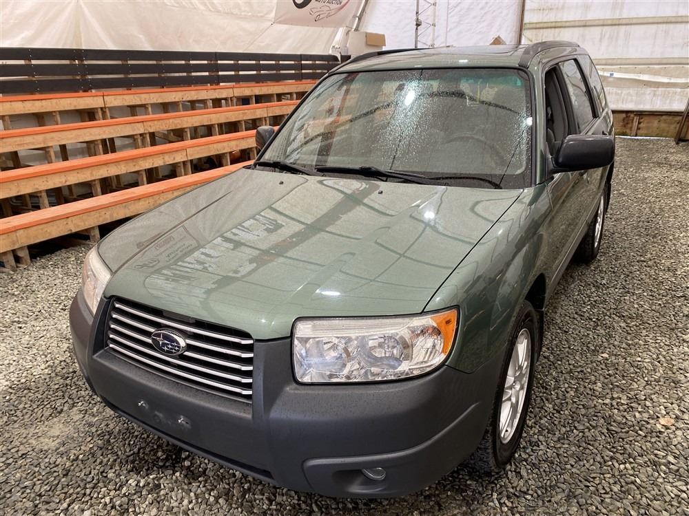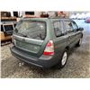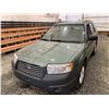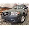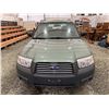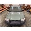 2007 SUBARU FORESTER, GREEN, 285466 KMS, 2.5L, 4 CYLINDER, GASOLINE, AUTOMATIC, TRANSMISSION, ALL WHEEL DRIVE, 5 PASSENGER. AIR CONDITIONING, POWER WINDOWS, POWER LOCKS, KEY-LESS ENTRY, TILT STEERING, ALLOY WHEELS, ANTI THEFT, POWER SUNROOF, CD PLAYER, HEATED SEATS, FOG LIGHTS, TOW PACKAGE, POWER MIRRORS, . DECLARATIONS: NO DESIGNATIONS 0 ACCIDENTS 1 GLASS CLAIM, TOTALING $743. SERVICE HISTORY SHOWS7 RECORDS. AUCTION NOTES: STOCK #: J733955 JF1SG63687H733955 NOT MECHANICALLY INSPECTED, NOT SUITABLE FOR TRANSPORTATION, MUST TOW.