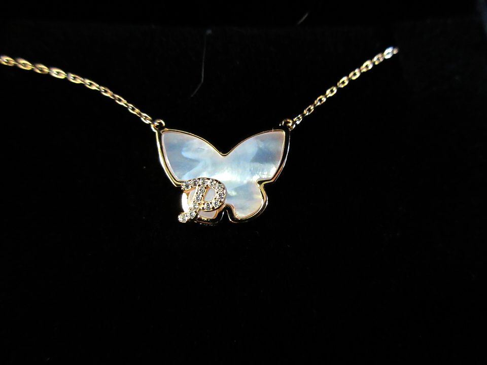 Gold tone or silver tone. 15 mm x 17 mm pendants on 18" chains. Variety of initials.