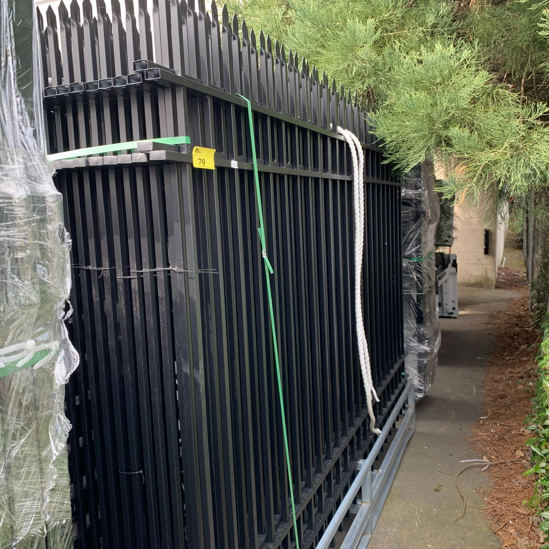 24 PIECES OF BLACK POWDER COATED GALVANIZED STEEL GARDEN/PUBLIC SPACE FENCING WITH 25 POSTS FENCE SIZE 10'L X 7'H *IN CRATE*